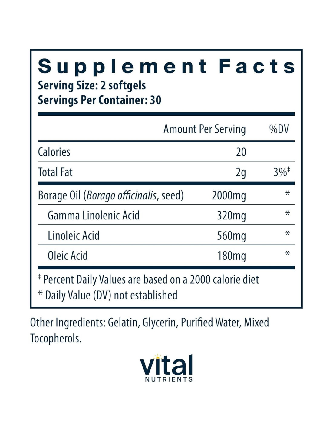 Aceite de Borraja Vital Nutrients 1000mg 60 Gelatinas Blandas