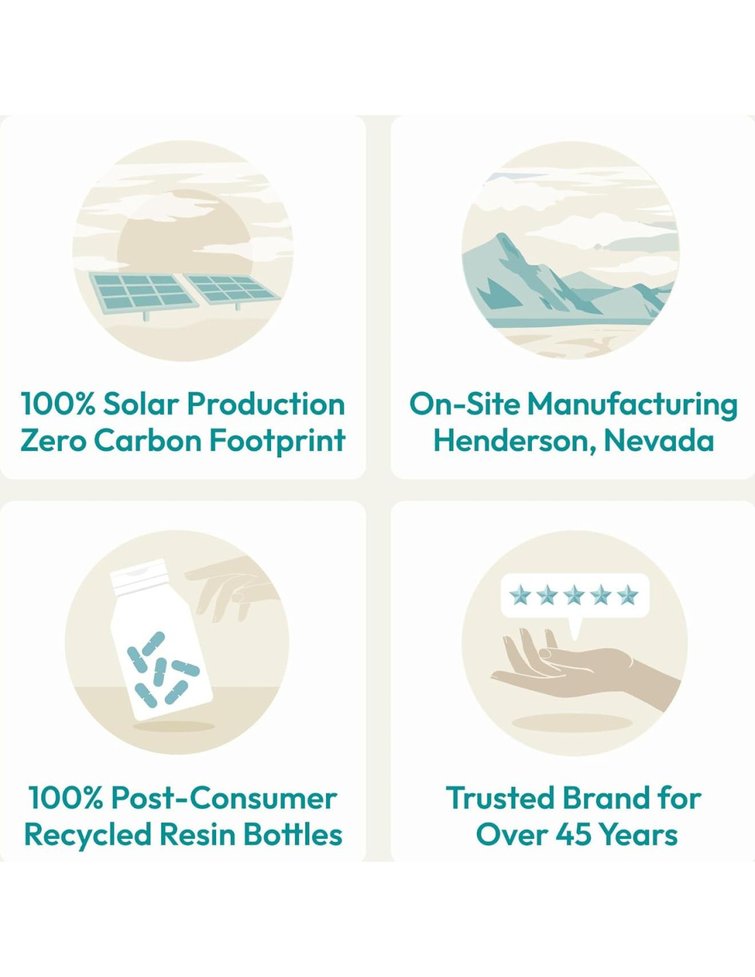 - Ético y ecológico. Huella de carbono cero - Comprometido de manera única con tu salud y la salud del planeta, las instalaciones de ProCaps son 100% alimentadas por energía solar con una huella de carbono cero y un estatus de edificio verde LEED Gold. Todas las botellas de ProCaps están hechas de resina reciclable 100% post-consumo. Además, Andrew Lessman y ProCaps son el mayor donante de vitaminas prenatales en el mundo (más de 2 mil millones de cápsulas donadas hasta la fecha). ProCaps, la Opción Informada para Suplementos Nutricionales.
