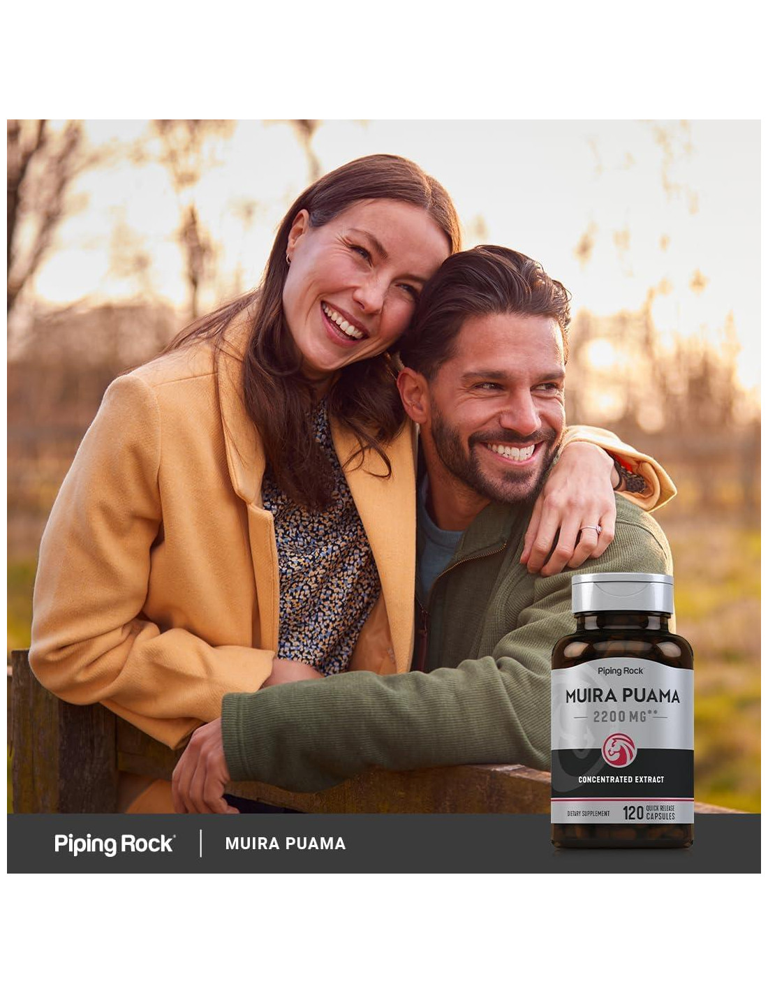 Muira Puama es un árbol exótico y potente indígena de la selva amazónica. Puede crecer hasta 4.57 metros y produce flores blancas con un olor intensamente dulce a jazmín. La corteza y las raíces de esta planta han sido utilizadas durante siglos en tradiciones holísticas. Los nativos de Brasil han reverenciado esta hierba por sus propiedades místicas. Piping Rock ahora ofrece esta hierba dinámica en una increíble fórmula Sin OGM. Estos ingredientes se encuentran comúnmente en tinturas líquidas, pero la innovación en suplementos ha llevado a otras creaciones. Piping Rock se enorgullece de ofrecer una selección en constante crecimiento de productos diseñados para ayudarle a alcanzar sus objetivos únicos de bienestar. Verificamos todos los productos con agencias de terceros registradas por la FDA, asegurando pureza, potencia, seguridad e innovación en todo lo que hacemos. Estamos comprometidos a apoyarle en su camino hacia una vida saludable, y le agradecemos por elegirnos.