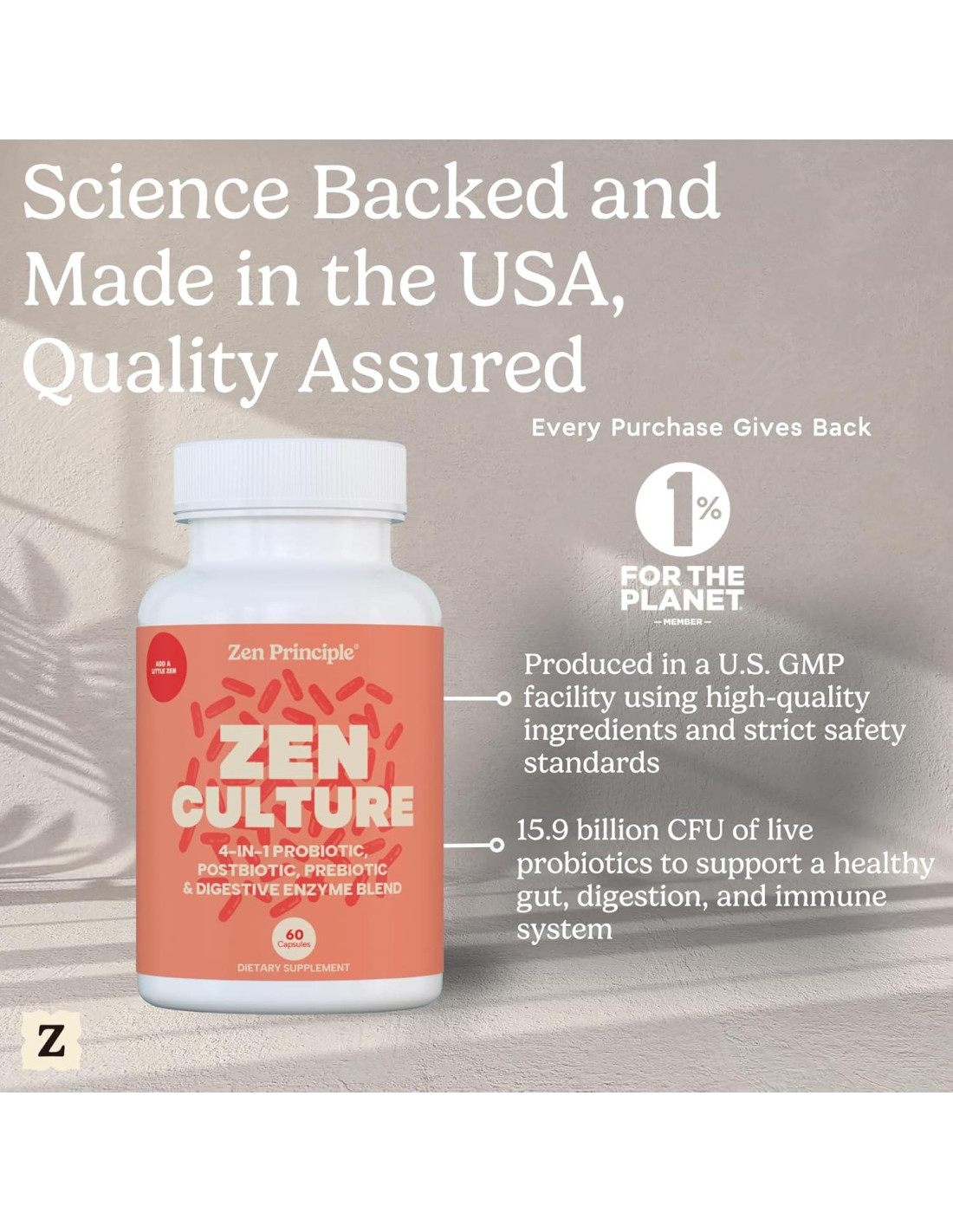 - PROBIÓTICOS PARA LA SALUD DIGESTIVA: Zenculture incluye cultivos de probióticos y prebióticos premium para apoyar el equilibrio intestinal, la comodidad digestiva y el bienestar general de las mujeres.