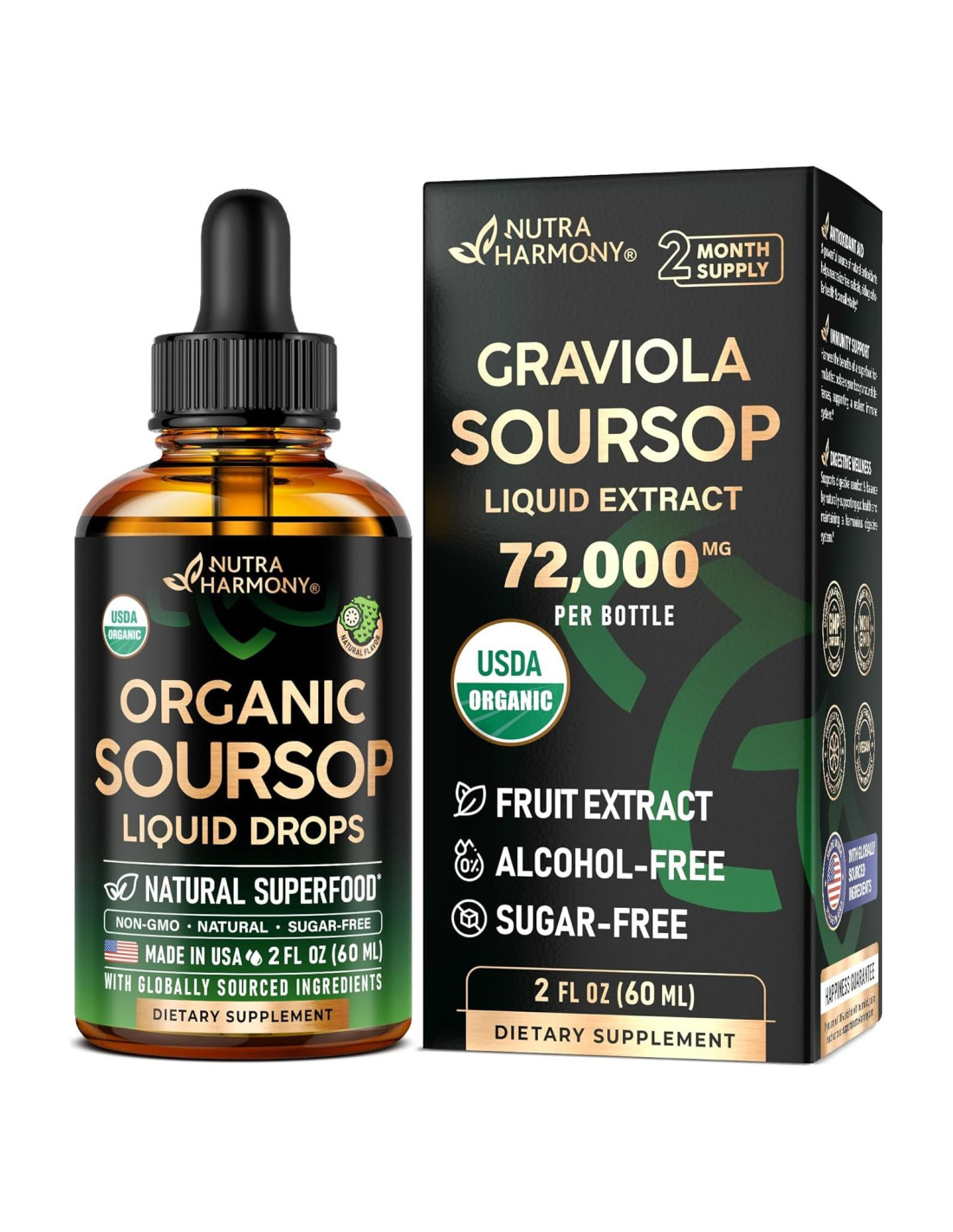 - Soursop Graviola Orgánico USDA - experimenta el poder natural de un superalimento tropical con una fórmula líquida amarga de soursop a base de plantas. Hecho de fruta Graviola orgánica, el soursop orgánico ofrece un sabor limpio y refrescante junto con potentes beneficios para la salud. Cuidadosamente elaborado para aprovechar el poder del soursop, las gotas de soursop orgánico apoyan el equilibrio natural de tu cuerpo y la vitalidad diaria.