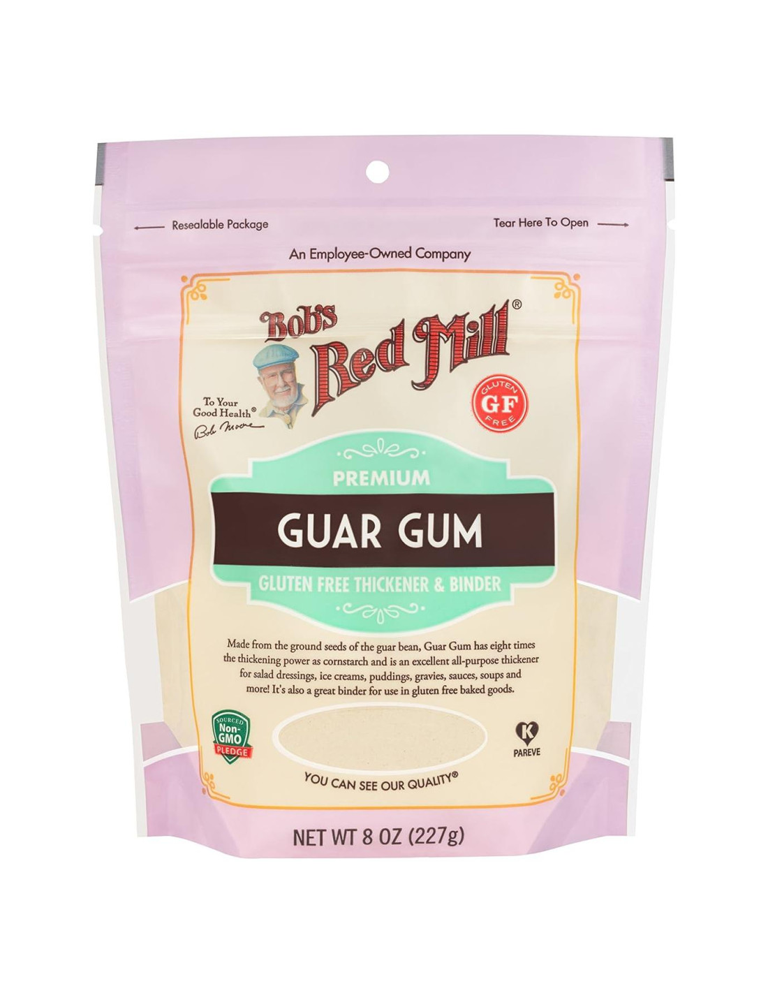 Hecha de las semillas molidas de la planta de goma guar, la goma guar tiene ocho veces el poder espesante del almidón de maíz y es un excelente espesante multiusos para aderezos de ensaladas, helados, pudines, salsas, sopas y más. También es un gran aglutinante para usar en productos horneados sin gluten.