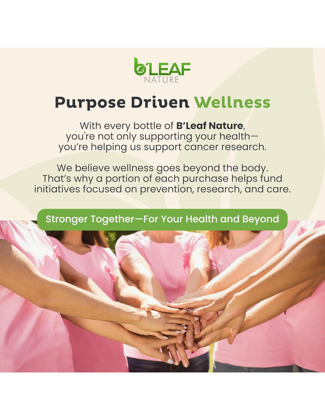 - BIENESTAR CON PROPÓSITO: Tú apoyas tu salud con los suplementos orgánicos de B'Leaf Nature, y nosotros contribuimos a la investigación del cáncer con tu compra. Juntos, hacemos un impacto y fomentamos el bienestar.