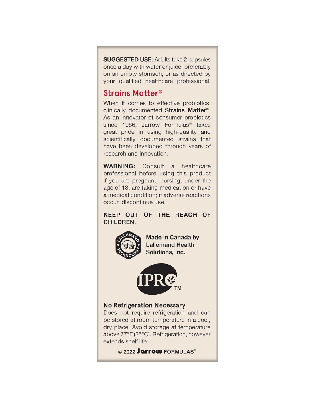 Las Cápsulas Probióticas Jarro-Dophilus EPS de Jarrow Formulas proporcionan una mezcla cuidadosamente seleccionada de cepas probióticas para mantener el equilibrio intestinal y apoyar la salud del tracto intestinal. Hecho con ingredientes de alta calidad, no OGM, este suplemento dietético vegetariano y sin gluten no contiene trigo, huevo, pescado, mariscos, cacahuetes, nueces de árbol ni sésamo. Una excelente opción para las personas que buscan apoyar su tracto intestinal, cada porción de Jarro-Dophilus EPS entrega 10 mil millones de organismos de ocho cepas estudiadas clínicamente directamente en el intestino delgado para ayudar a mantener y regular la salud intestinal. Estas cepas incluyen Lactobacillus rhamnosus R0011 que facilita la colonización y estimula la respuesta inmune intestinal, Bifidobacteria longum BB536 que promueve el crecimiento de bacterias beneficiosas, y Lactobacillus helveticus R0052 que ayuda a descomponer la lactosa y puede ser útil para aquellos con intolerancia a la lactosa. Cada cápsula está empacada en blíster para protegerla de la humedad y cuenta con el recubrimiento patentado Enteroguard para proteger los probióticos del ácido estomacal. Uso Sugerido: Adultos, tomar dos cápsulas una vez al día con agua o jugo y preferiblemente con el estómago vacío, o según lo indique su profesional de salud calificado. Informado por una sólida investigación científica, los productos de Jarrow Formulas están cuidadosamente elaborados para garantizar que obtenga el beneficio de cada vitamina, mineral y suplemento.