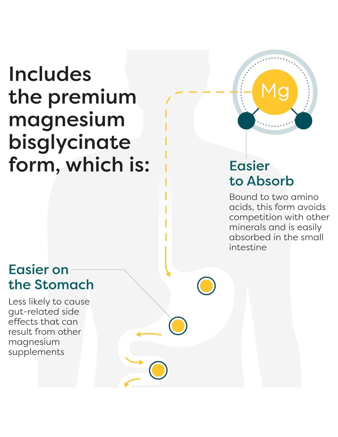 - Altamente Biodisponible y Fácil de Digestionar - Este complejo de glicinato de magnesio quelado contiene magnesio unido a glicina. Esto ayuda a nuestra fórmula a asegurar una absorción superior mientras se mantiene suave para la digestión.