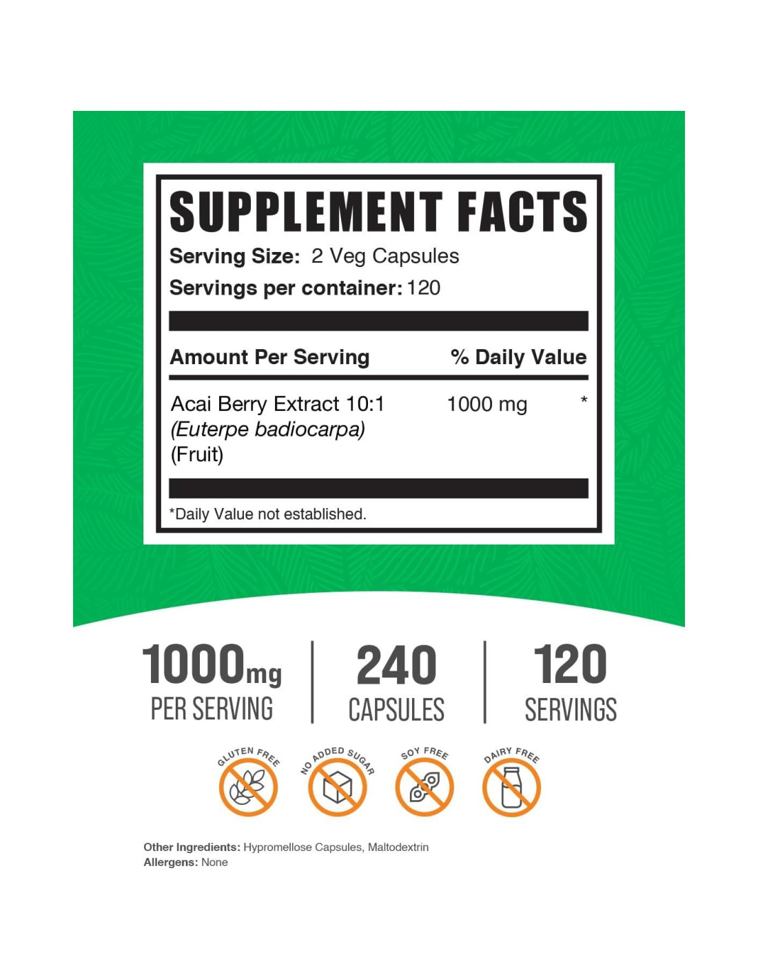 - Compromiso con la Excelencia: Producidas en una instalación que cumple con estrictos estándares cGMP, nuestras cápsulas de Acai Berry, o pastillas de Acai Berry, son un testimonio de nuestra dedicación a la calidad. Puedes confiar en la consistencia y excelencia de nuestro producto, lote tras lote.