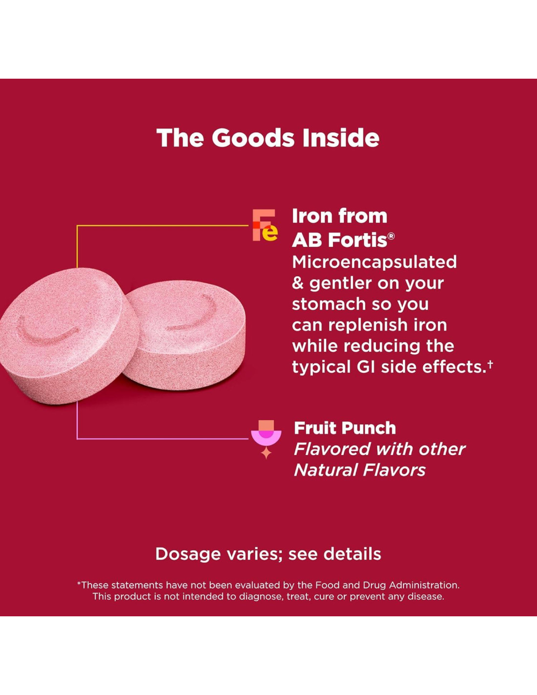 - DELICIOSAMENTE DELICIOSO: Estas tabletas de hierro son de sabor Fruta Punch con otros sabores naturales. 60 tabletas por botella (suministro de 30 o 20 días).