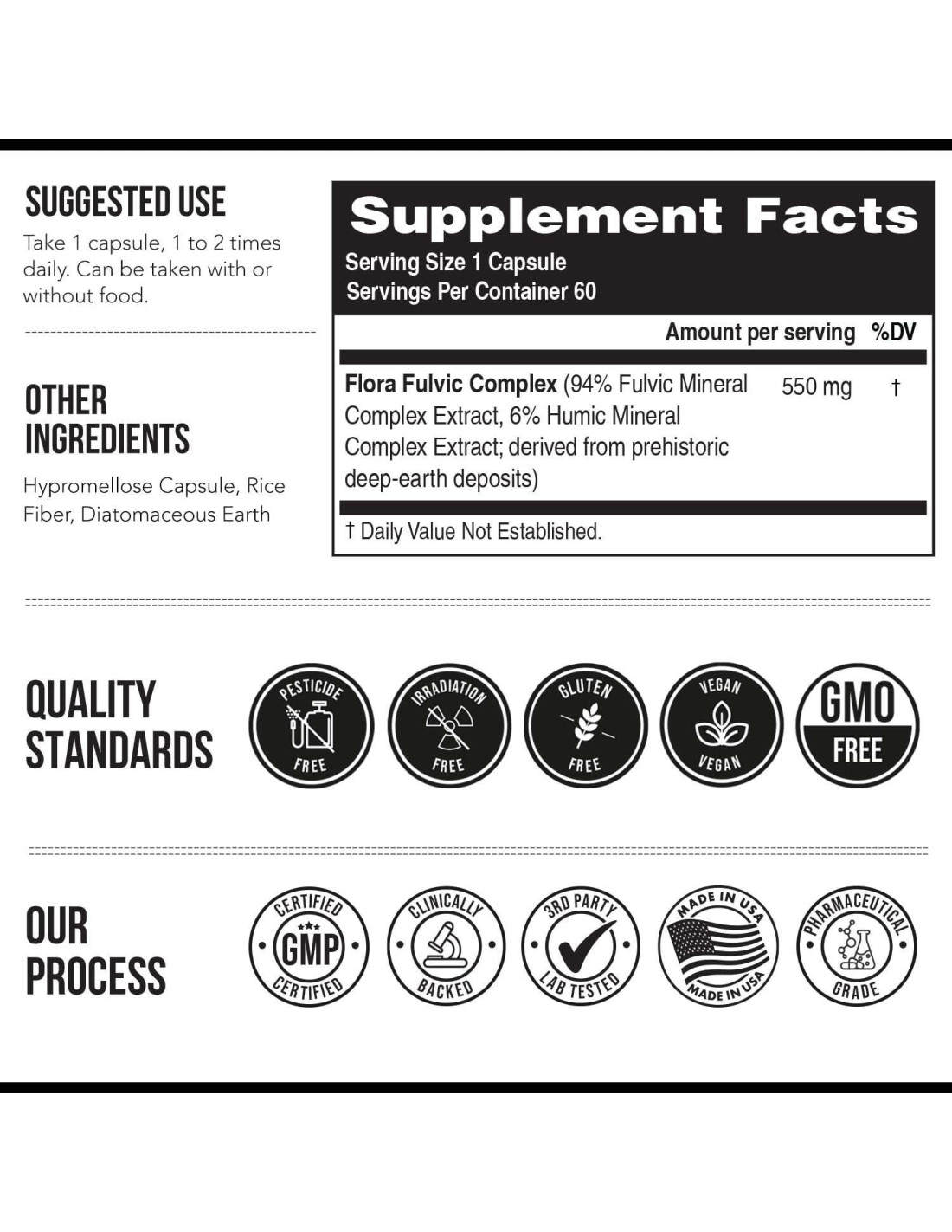 - MÁS POTENTE QUE EL SHILAJIT | El nutriente activo principal en el Shilajit es el Ácido Fulvico. En promedio, el Shilajit contiene entre 15% y 20% de Ácido Fulvico. La fórmula de Flora Fulvic contiene una concentración del 96% de Ácido Fulvico; cada cápsula proporciona más de 500 mg de Ácido Fulvico por cápsula.