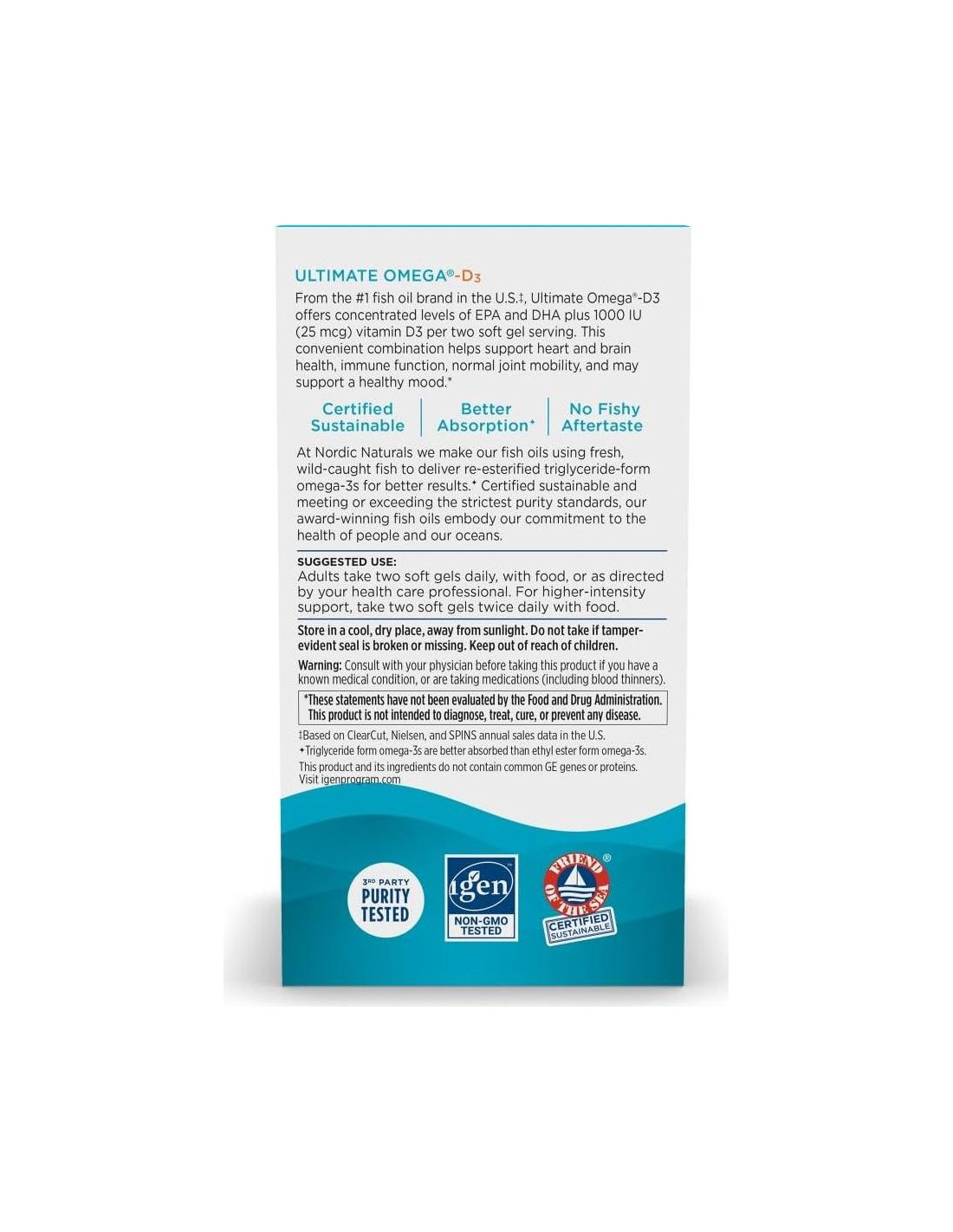 - MEJOR ABSORCIÓN, MEJOR SABOR, SIN ERUCTOS A PESCADO - Todos nuestros concentrados de aceite de pescado omega-3 están en forma molecular de triglicéridos (la forma que se encuentra naturalmente en el pescado) para una absorción óptima. Omega-D3 Ultimate tiene un gran sabor a limón.