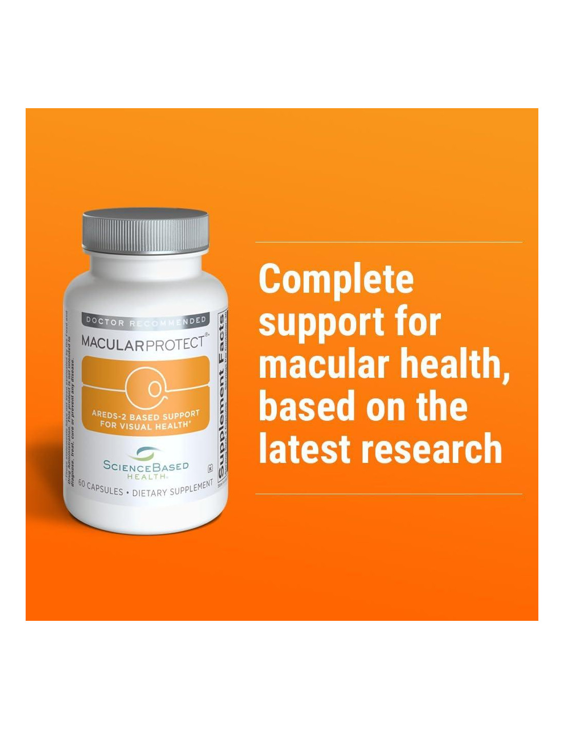 Durante casi 30 años, ScienceBased Health ha establecido el estándar de calidad en suplementos nutricionales basados en evidencia para la salud ocular. Combinamos rigor científico con ingredientes de calidad premium para desarrollar productos con beneficios clínicamente estudiados. Recomendado por oftalmólogos en todo EE. UU., nuestras formulaciones ofrecen resultados en los que puedes confiar. Revisamos continuamente la investigación emergente y mejoramos nuestros productos cuando la evidencia respalda beneficios claros para la salud. Apropiado para individuos preocupados por preservar la vista, MacularProtect se basa en los hallazgos tanto del estudio original sobre la enfermedad ocular relacionada con la edad (AREDS) como del seguimiento (AREDS2). El ensayo original mostró que los pacientes de alto riesgo que recibieron antioxidantes con zinc tenían una probabilidad significativamente mejor de conservar su visión. MacularProtect incluye nutrientes: vitaminas C y E, zinc, cobre, luteína y zeaxantina FloraGLO en niveles que se ha encontrado que protegen la salud macular en los ensayos clínicos AREDS y AREDS 2. Los antioxidantes ayudan a combatir el estrés oxidativo, un proceso que puede dañar las estructuras dentro del ojo. El Instituto Nacional del Ojo (NEI) recomienda la fórmula original AREDS, con luteína y zeaxantina reemplazando al beta caroteno, como el nuevo estándar de atención para aquellos con preocupaciones de salud macular. Apropiado para fumadores y no fumadores. MacularProtect es ampliamente recomendado por oftalmólogos, optometristas e instituciones de cuidado ocular. MacularProtect proporciona cantidades adecuadas de tres vitaminas B: ácido fólico, vitamina B6 y vitamina B12. La evidencia sugiere que estas vitaminas B apoyan la salud macular. Un ensayo de intervención a gran escala en mujeres encontró que el ácido fólico en dosis altas con vitaminas B6 y B12 tomadas durante un período de 7 años mejoró sus posibilidades de mantener la salud macular. Los resultados de otro estudio de salud poblacional a largo plazo respaldan estos hallazgos clínicos. La luteína y la zeaxantina, concentradas en alimentos como espinacas, col rizada y maíz, forman el pigmento amarillo de la mácula lútea - el área en el centro de la retina del ojo donde ocurre la visión central más nítida. La ingesta regular de luteína y zeaxantina contribuye a la densidad de este pigmento macular protector. Muchos estadounidenses consumen menos de 2 mg diarios - muy por debajo de los 10 mg probados en AREDS2 e incluidos en esta fórmula. Recomendado por médicos Fabricado en instalaciones certificadas por NSF Hecho de ingredientes de calidad premium en niveles significativos que se ha encontrado clínicamente que son beneficiosos Hecho en EE. UU. en instalaciones certificadas por NSF