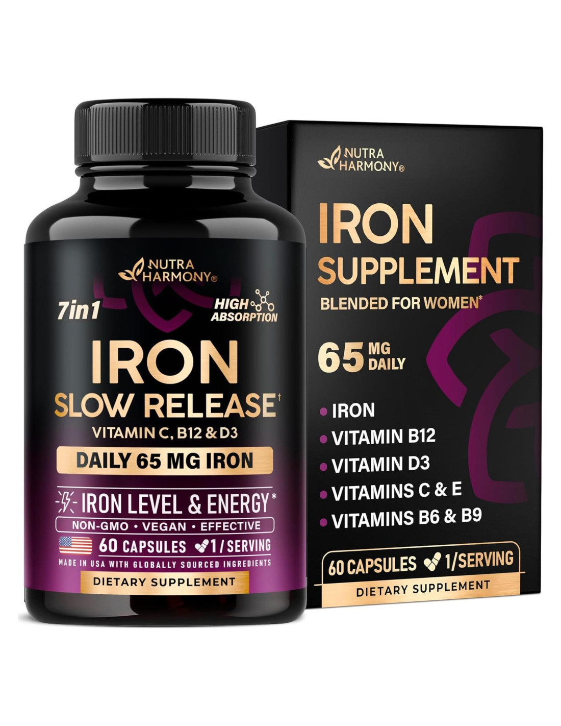 - Complejo 7-en-1 - Hierro con Vitamina C, B12 y D3. Mejorado con vitamina C para apoyar la absorción de hierro y potenciado con vitaminas esenciales, maximizando los beneficios para su salud. Nuestro suplemento de hierro con vitamina C es perfecto para aquellos que buscan suplementos de hierro con biodisponibilidad mejorada. Nuestro suplemento de hierro 65 mg también es adecuado para entusiastas de suplementos de hierro veganos, proporcionando una solución integral de vitaminas de hierro que es suave y amigable con el estómago.