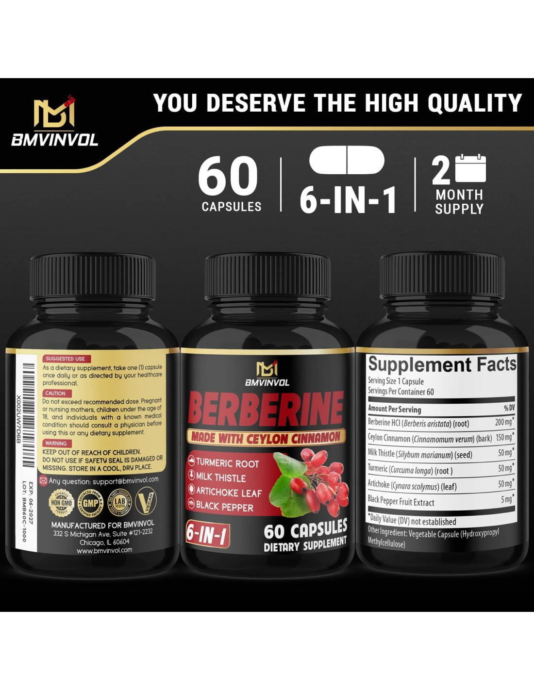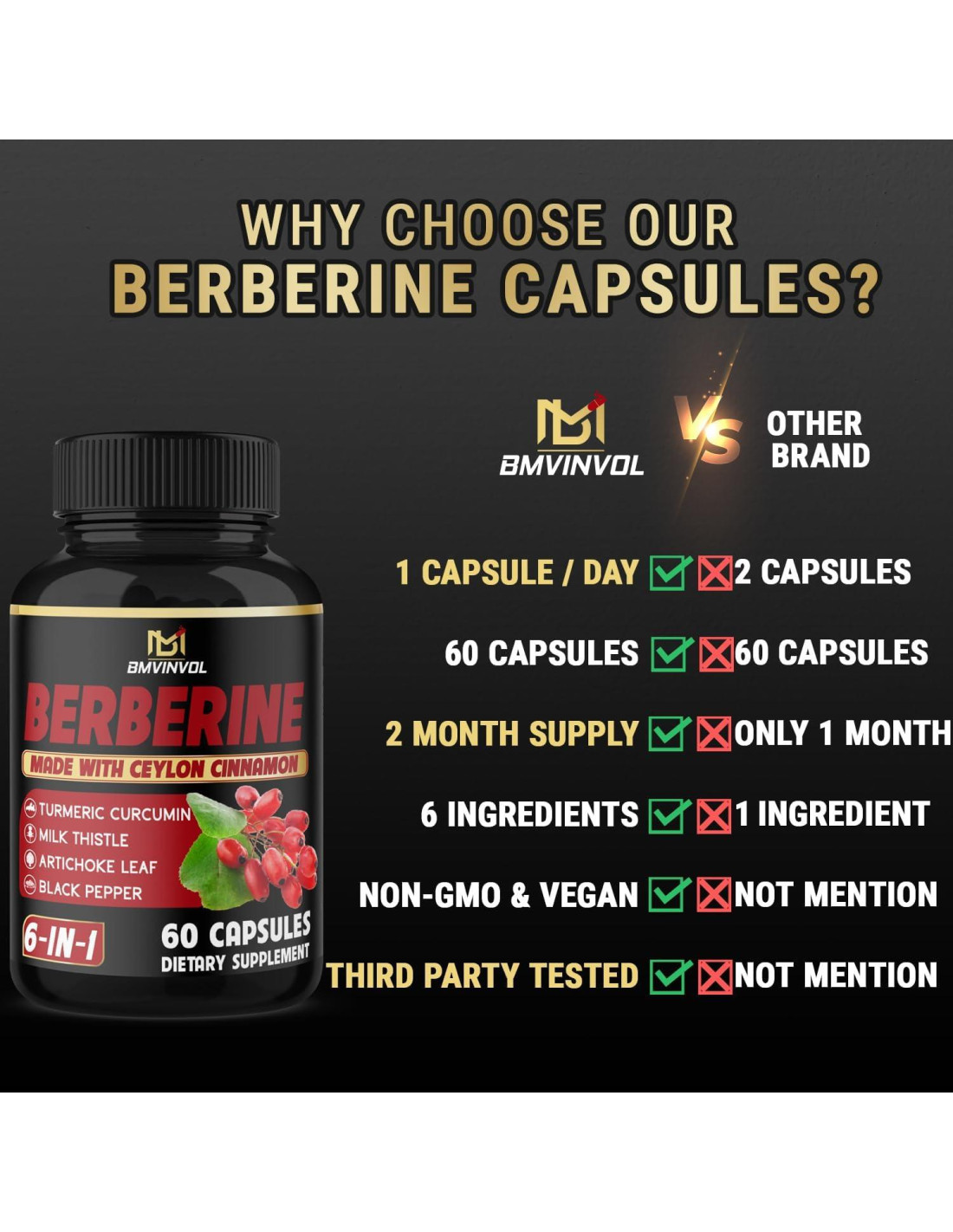 - 6 ingredientes: Berberina HCl, canela de Ceilán, cardo mariano, cúrcuma, alcachofa, pimienta negra.