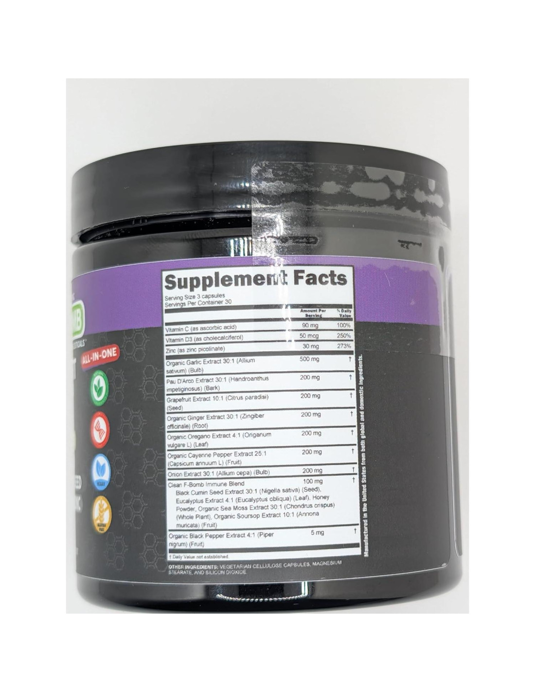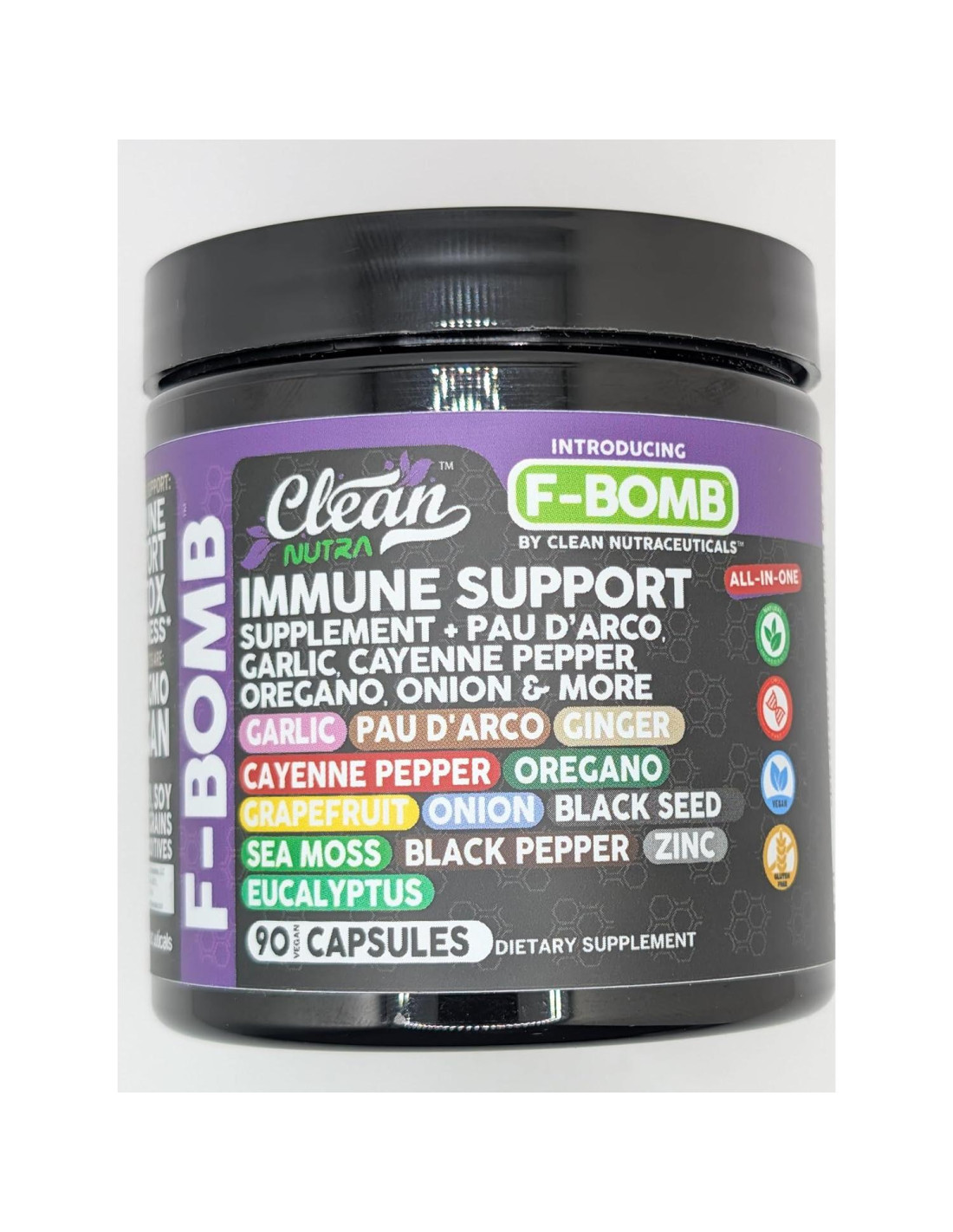 Clean Nutra Soporte inmunológico para el soporte inmunológico diario. Una poderosa combinación de suplementos veganos como corteza de pau d'arco, extracto de ajo, cápsulas de pimienta de cayena orgánica, orégano orgánico, jengibre orgánico, aceite de orégano con aceite de semilla negra, pastillas de musgo marino, polvo de pimienta negra, óxido de zinc y aceite de soursop para apoyar tu salud en general. Minerales como suplemento de zinc, cápsulas de vitamina C, orégano seco, raíz de jengibre orgánica y vitamina D 5000 apoyan aún más tu salud durante las transiciones estacionales. El musgo marino orgánico proporciona además yodo, magnesio, potasio, vitamina C con zinc que contribuye a la salud inmunológica en general. La pimienta negra entera, el suplemento de vitamina D y los suplementos de pimienta de cayena ayudan a que tu cuerpo utilice completamente las vitaminas y minerales que recibe. Juntos, estos ingredientes crean un enfoque integral para apoyar tu salud inmunológica y apoyar la vitalidad en general.