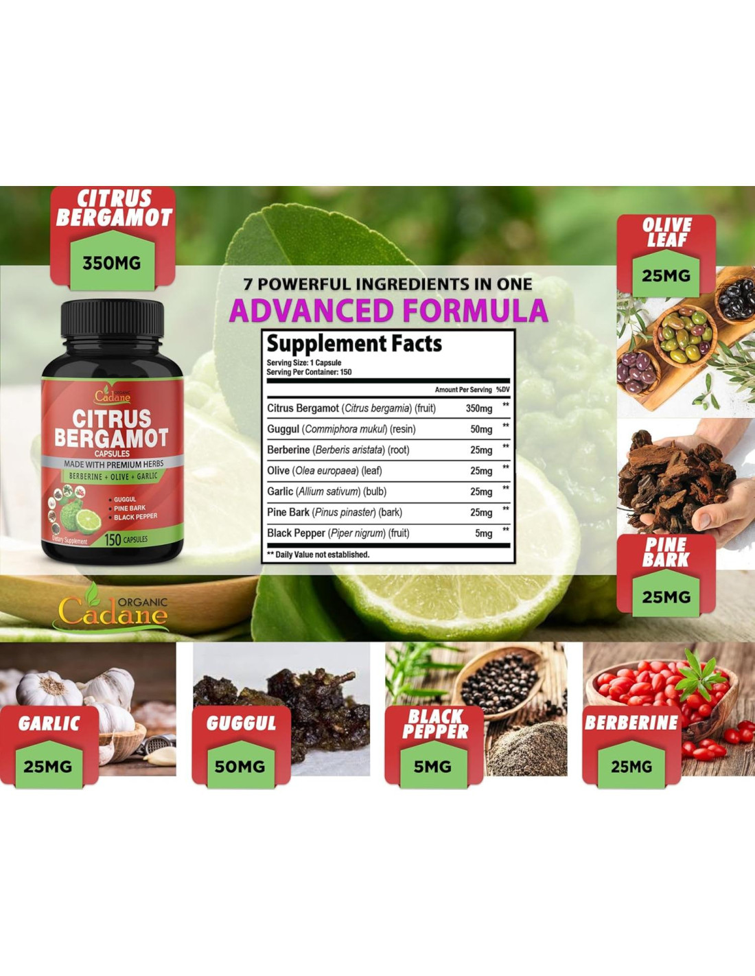 - Cápsulas de Suplemento de Bergamota Cítrica Cadane, una combinación perfecta de ingredientes multi-premium con una fórmula excepcionalmente fuerte.
