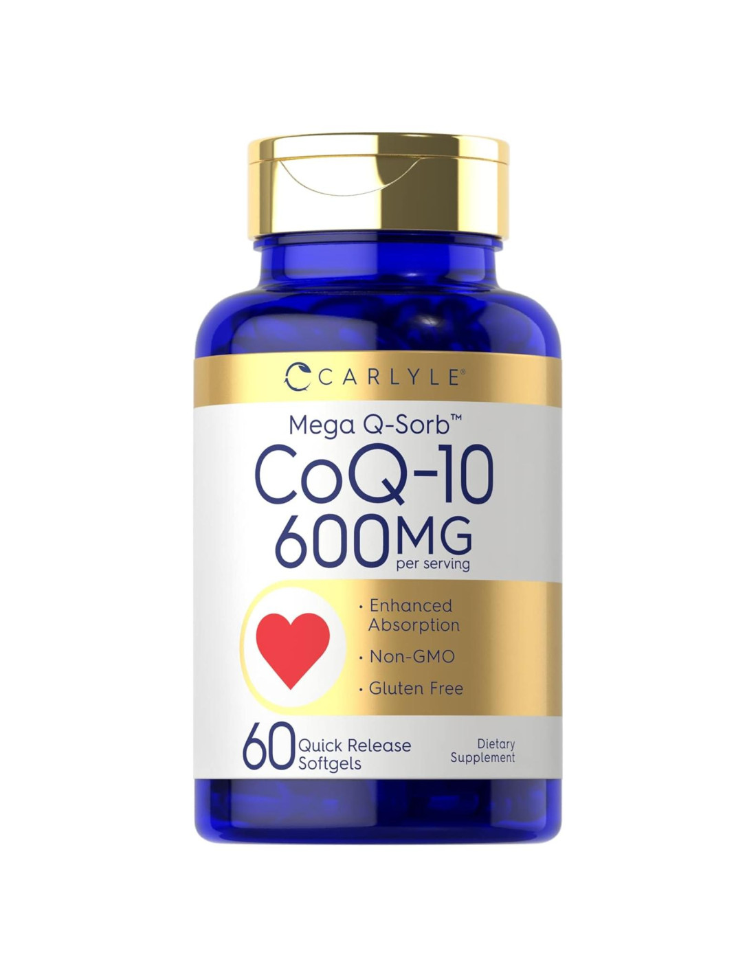 En Carlyle, nuestras raíces son profundas con más de 40 años de experiencia en salud y bienestar. Tres generaciones después, nuestra familia está comprometida a proporcionar productos de calidad en los que puedes confiar. Nuestra experiencia en la obtención de los ingredientes más puros combinada con tecnologías avanzadas nos enorgullece ofrecer suplementos premium y honestos al mejor valor. Estamos dedicados a apoyarte y gracias por elegirnos en tu búsqueda de una vida saludable. Ingredientes de confianza y calidad superior. Nuestras raíces en la industria de suplementos comenzaron en 1971, con solo un padre y un hijo. Tres generaciones y tres negocios exitosos después, te traemos Carlyle. Nuestra empresa se basa en la experiencia, el trabajo duro y el crecimiento. Contamos con un equipo dedicado que aporta más de 40 años de experiencia en la creación de vitaminas, minerales y suplementos herbales. No es suficiente para nosotros proporcionarte suplementos de alta calidad a bajo costo, queremos aspirar a más. Queremos ofrecerte la mejor experiencia posible. Comúnmente conocido como el antioxidante universal, la Coenzima Q10 es un compuesto importante que se encuentra en todo el cuerpo. Con el tiempo, se vuelve más difícil para tu cuerpo producir este nutriente. La CoQ10 ahora se puede obtener de alimentos nutritivos en cantidades traza y también puede provenir de un suplemento como líquido, polvo a granel, tabletas, gomitas, cápsulas y masticables. Esta fórmula de alta potencia presenta 600 mg por porción de Mega Q-Sorb, una forma altamente innovadora de CoQ10, en gelatinas blandas de liberación rápida y sin OGM. Nuestras fórmulas son cuidadosamente probadas por su pureza y potencia, porque mereces nada menos que las mejores vitaminas cuando se trata de tu salud y bienestar. Nuestra experiencia en la obtención de los ingredientes más puros combinada con tecnologías avanzadas nos enorgullece ofrecer suplementos premium y honestos al mejor valor. Carlyle Mega Q-Sorb es un testimonio de nuestro compromiso con la excelencia, hecho con ingredientes poderosos arraigados en el bienestar. Gracias por elegirnos en tu búsqueda de vivir saludablemente. ADVERTENCIA: Si estás embarazada, amamantando, tomando algún medicamento o tienes alguna condición médica, consulta a tu médico antes de usar. Si ocurren reacciones adversas, deja de usar este producto inmediatamente y consulta a tu médico. Si el sello debajo de la tapa está dañado o falta, no lo uses. Mantener fuera del alcance de los niños. Almacenar en un lugar fresco y seco.