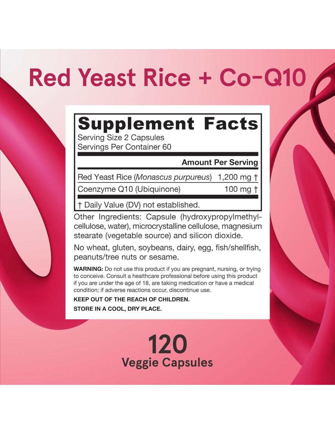 - CoQ10 para la Salud del Corazón: Cada porción ofrece 1,200 mg de arroz de levadura roja y 100 mg de Co-Q10