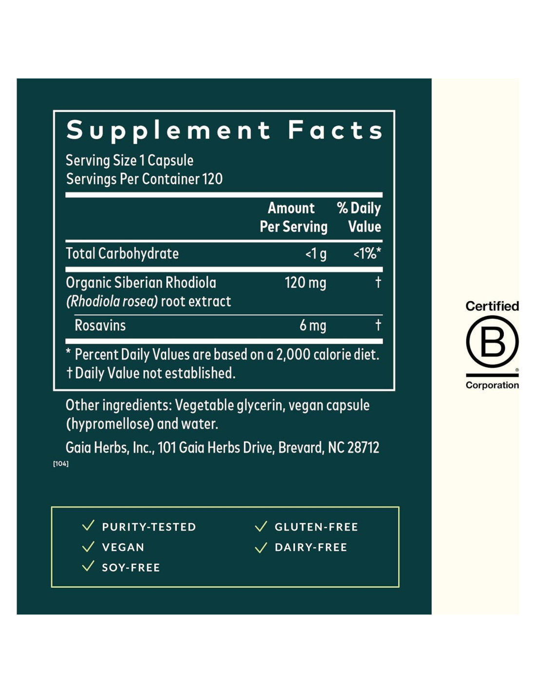 - Probado por Pureza: Gaia Herbs Rhodiola Rosea es vegano, sin gluten y orgullosamente hecho en Carolina del Norte, EE. UU.