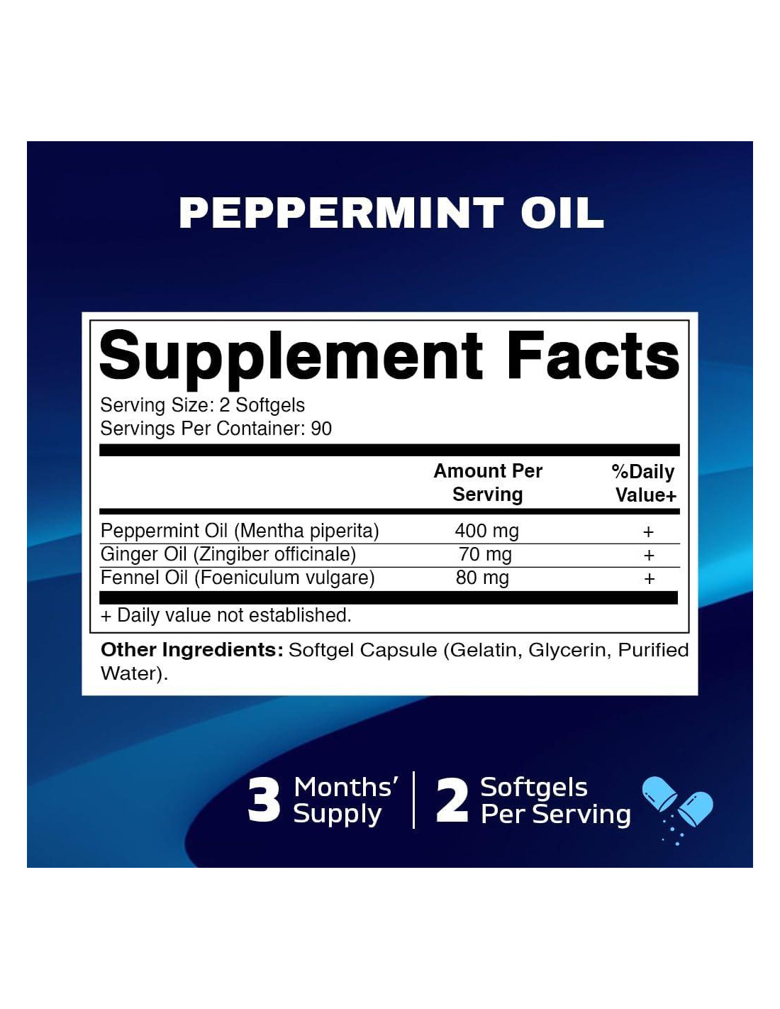 - El Gel de Aceite de Menta Vitamatic contiene 550mg de aceite de menta por porción, junto con aceites de jengibre y hinojo, para proporcionar apoyo digestivo natural.