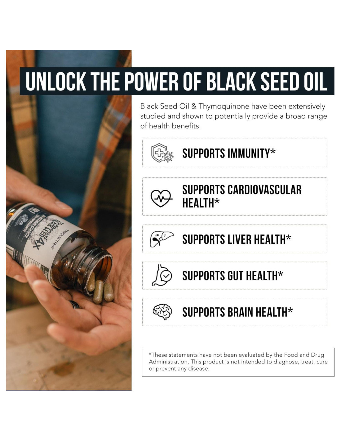 - Superalimento con Amplia Gama de Beneficios para la Salud: El Aceite de Semilla Negra (también conocido como Aceite de Kalonji o aceite de Nigella sativa) y específicamente la Timoquinona le dan a nuestras cápsulas de aceite de semilla negra uno de los números más amplios de poderosos beneficios para la salud.