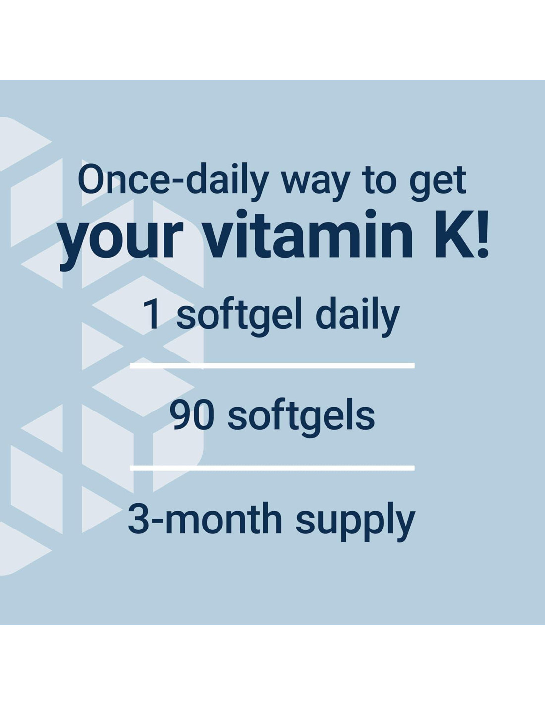 La vitamina K es una vitamina "esencial"; tu cuerpo no puede producir vitamina K por sí solo. Y la necesitamos: la vitamina K ayuda con todo, desde la salud arterial hasta la estructura ósea. Pero es difícil obtener suficiente vitamina K de los alimentos. Super K proporciona 100 mcg de vitamina K2 (MK-7); 1,000 mcg de vitamina K2 (MK-4); y 1,500 mcg de vitamina K1. Esta gelatina blanda de una vez al día es una excelente manera de asegurarte de obtener tu dosis diaria de vitamina K saludable. Sin gluten, no OGM, fabricado en EE. UU.
