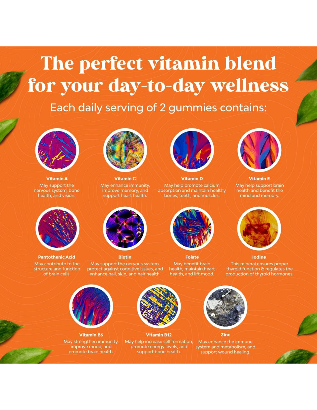 - Inmunidad Mejorada - Nuestras potentes gomitas multivitamínicas para adultos proporcionan las vitaminas y minerales necesarios para funcionar como gomitas de apoyo inmunológico para adultos que buscan mejorar sus defensas de manera natural