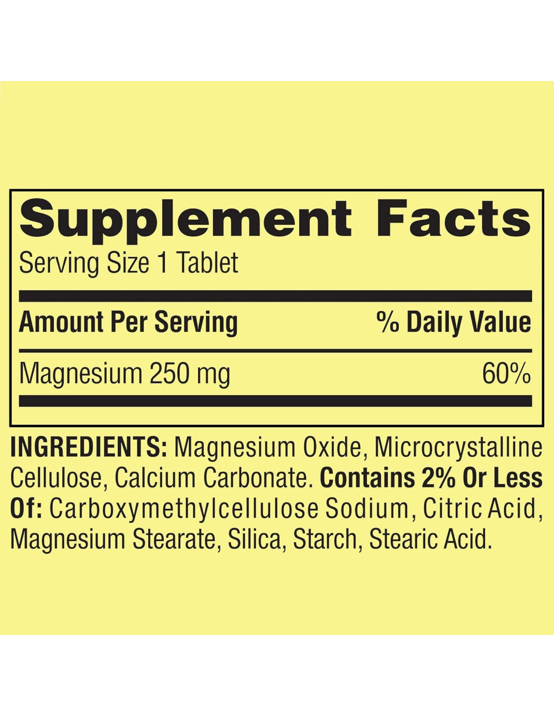 - Tabletas de Suplemento Dietético de Magnesio Spring Valley para Salud Ósea y Muscular, 250 mg, 250 Conteo