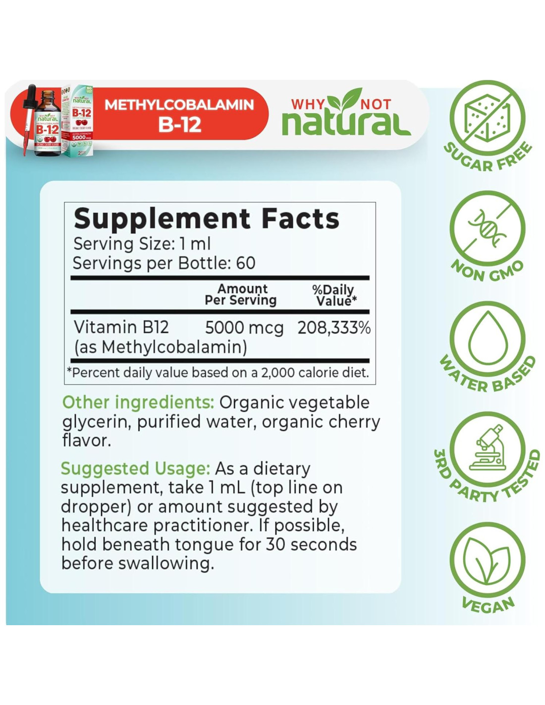 - COMPARA NUESTRA CALIDAD: Compara la etiqueta de hechos de tu actual suplemento de B12 con nuestra vitamina B12 líquida, y ve por qué Why Not Natural B12 es el #1. Hemos hecho de nuestra misión crear las mejores gotas de B12.