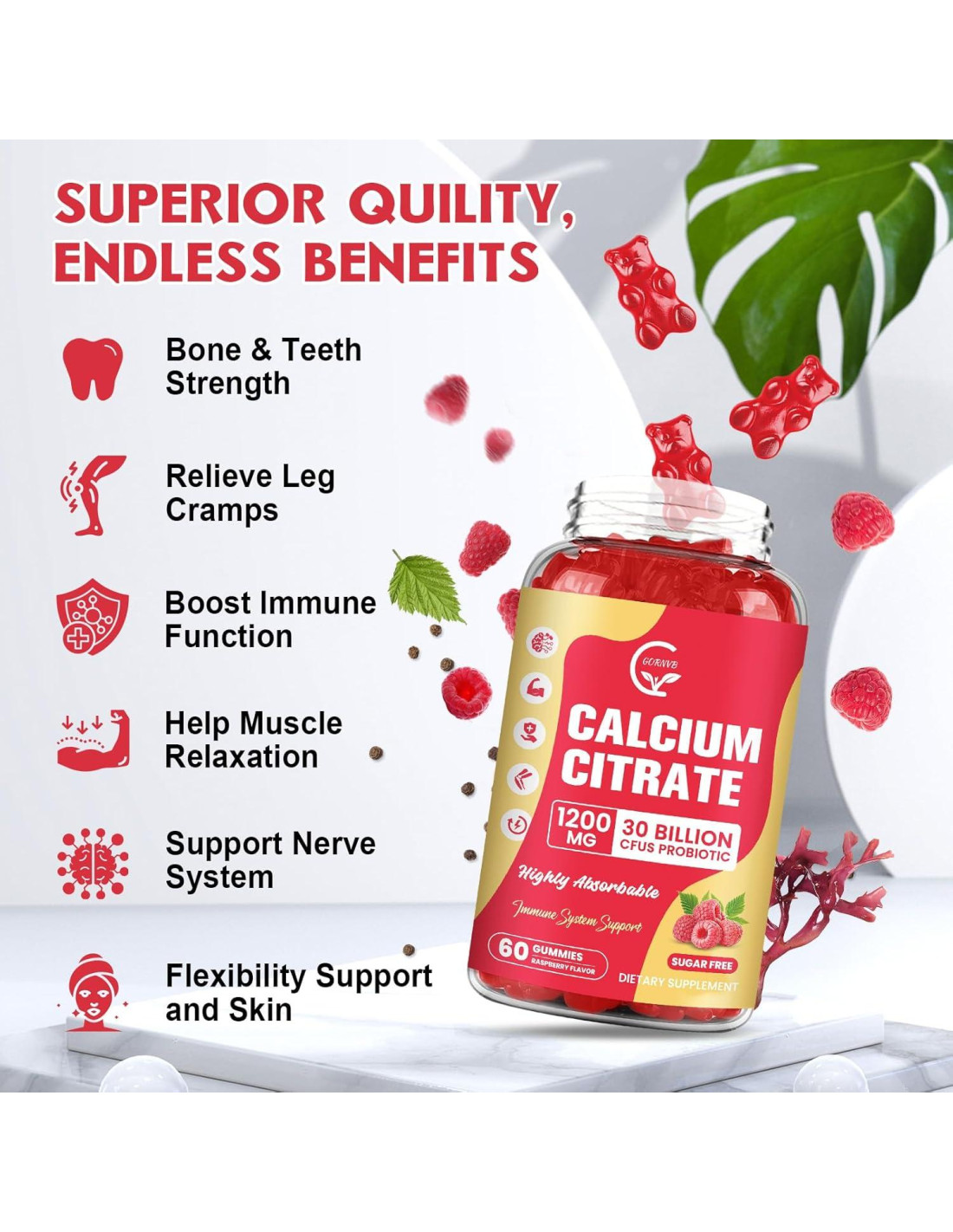 - Citrato de Calcio de Alta Absorción: Nuestras gomitas de citrato de calcio cuentan con una fórmula premium de citrato de calcio altamente absorbible, proporcionando 1200 mg por porción (2 gomitas). Mejoradas con Magnesio, Zinc, Manganeso, Vitamina D3, K2, Vitamina C, Musgo Marino Orgánico, Pimienta Negra, Probióticos y Extracto de Saúco, estas gomitas de calcio hacen más que solo apoyar la salud ósea; también refuerzan la inmunidad, mejoran la digestión y promueven la vitalidad general.