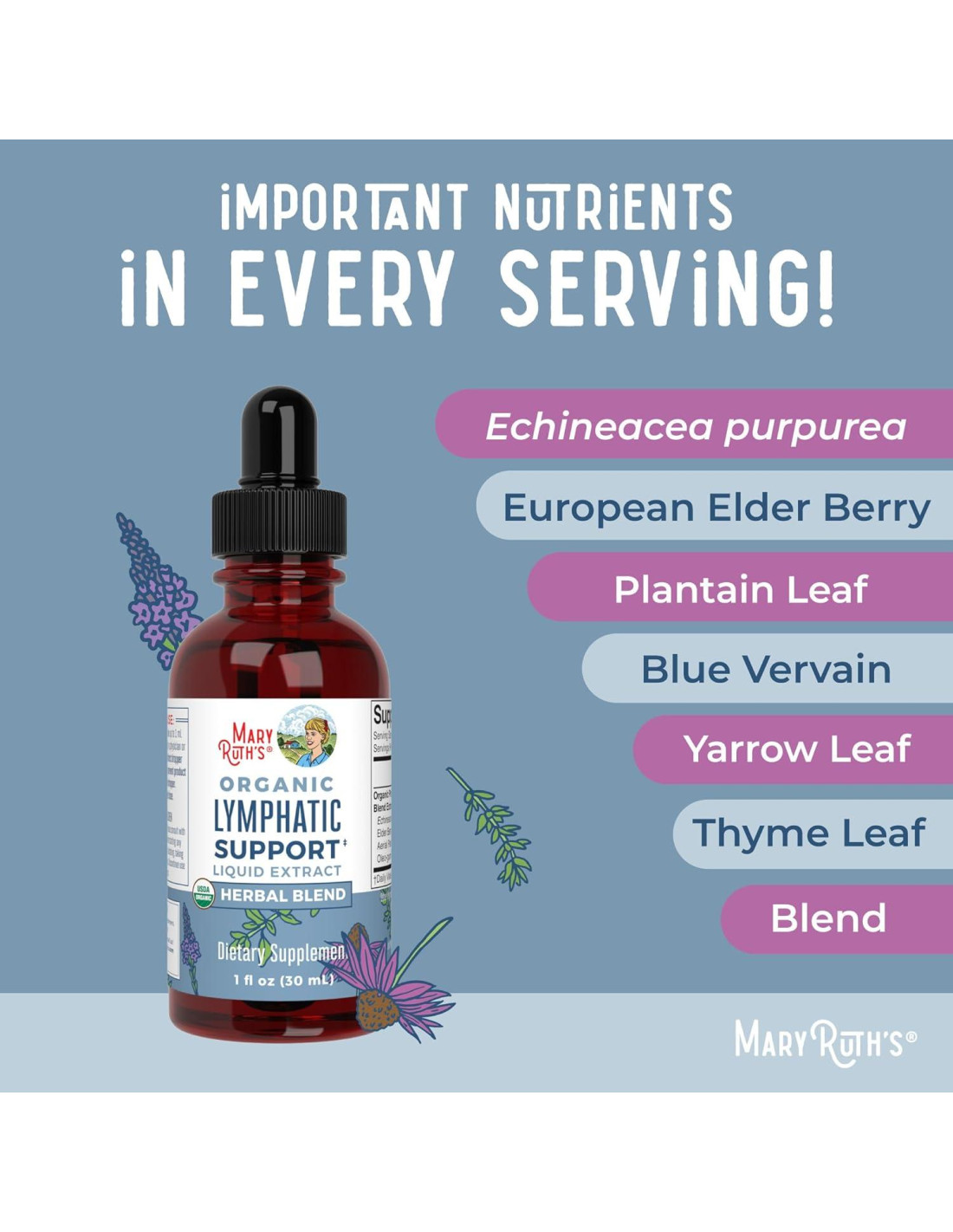 - Para la Mayoría de los Estilos de Vida: La Mezcla de Hierbas de Soporte Linfático de MaryRuth's es Orgánica USDA, No OGM, Certificada Vegana, Sin Colores Sintéticos o Artificiales, Sin Conservantes. Tintura Sin Alcohol, Sin Lácteos, Sin Nueces, Sin Gluten, Sin Azúcar, Hecho en una Instalación GMP. Certificado por Clean Label Project. Certificado B Corp.