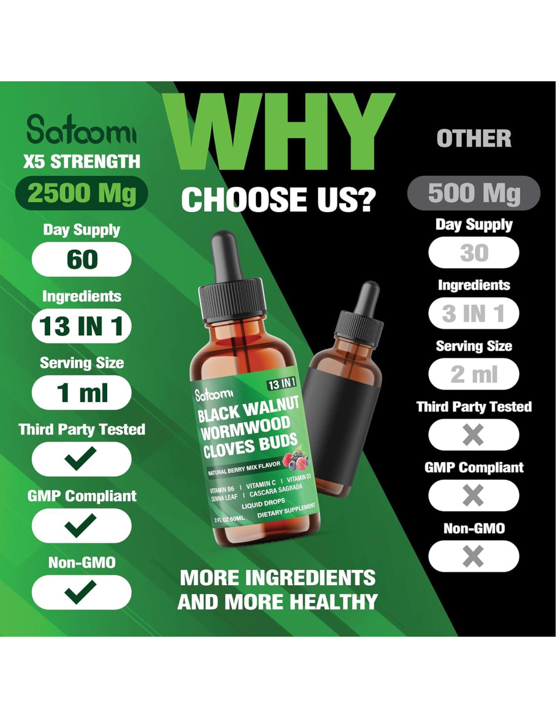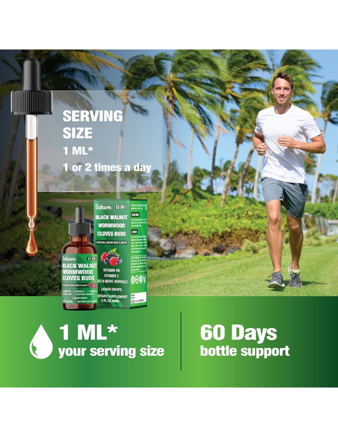 - Suministro Completo de 60 Días: Cada botella contiene 60ml de Extracto Líquido de Ajenjo de Nogal Negro, proporcionando un suministro completo para 60 días.