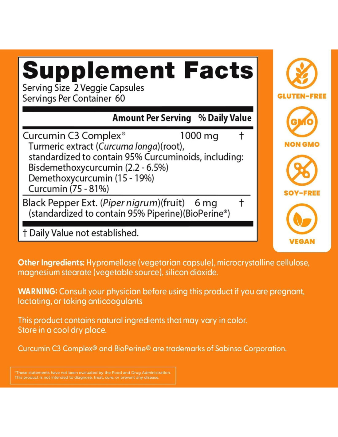 - CONFIABLE Y PURO - 500mg de Curcumina con Complejo C3 más BioPerine por porción. Sin Gluten, No GMO, Sin Soja. Doctor's Best se compromete a la seguridad de todos nuestros productos. Consulte a su proveedor de atención médica antes de usar.