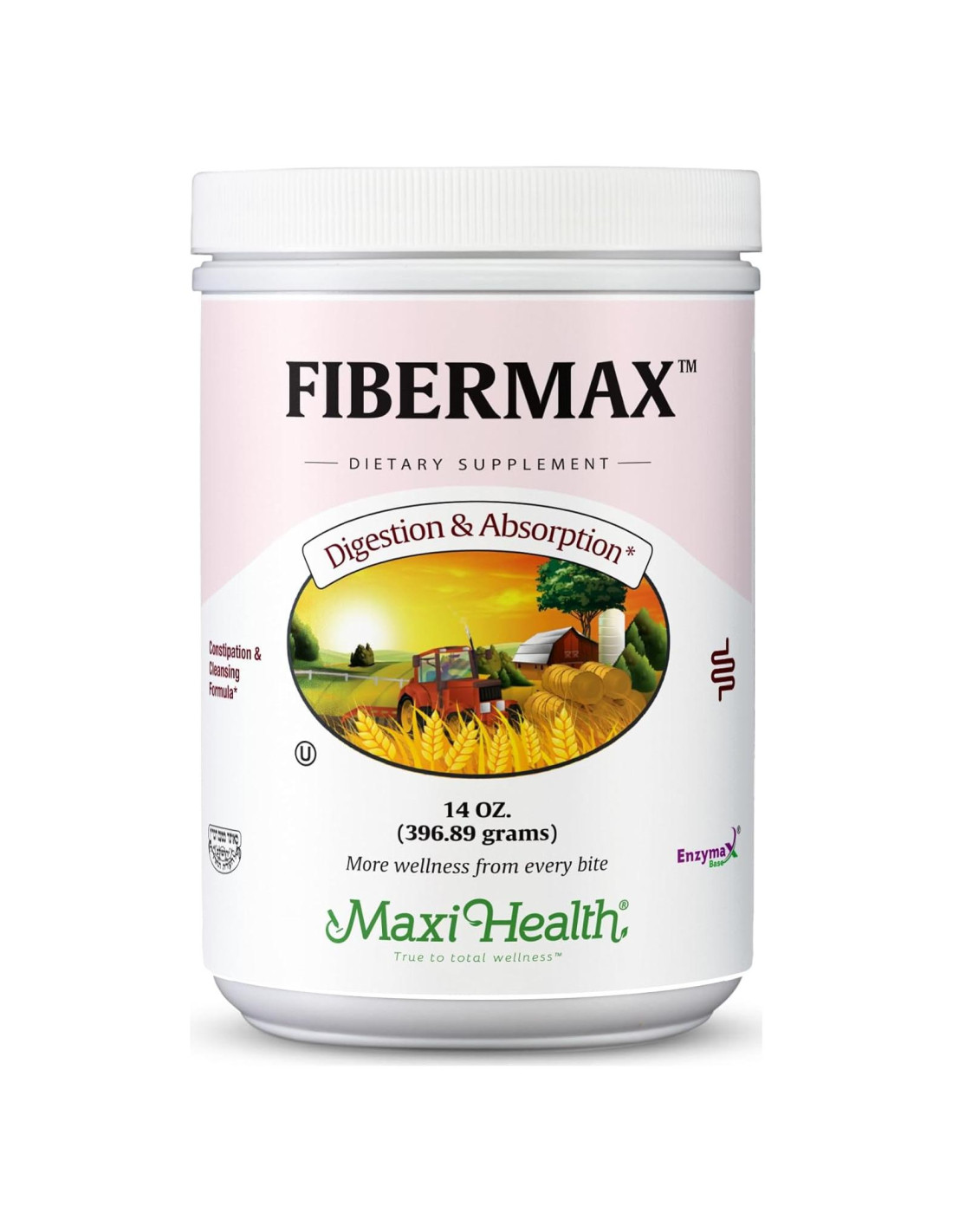 El polvo Fibermax de Maxi Health es una forma efectiva, segura y saludable de fomentar la regularidad y obtener la fibra que necesitas para una dieta saludable. Simplemente mézclalo con agua. La mayoría de los laxantes estimulantes de venta libre no resuelven problemas de estreñimiento e hinchazón. Están hechos de productos químicos que irritan el tracto digestivo, te deshidratan y, con el tiempo, pueden hacer que el colon sea cada vez menos efectivo. También pueden ser adictivos física y psicológicamente, requiriendo cada vez más. En el mejor de los casos, solo se recomiendan por períodos cortos de tiempo. Fibermax es un suplemento de alta fibra que apoya la eliminación saludable. Está hecho de cáscaras de psyllium de primera calidad y polvo de linaza. Esta fibra que produce volumen fomenta la eliminación normal de manera natural, sin estimulantes químicos y es no adictiva. Incluso contiene Enzymax, nuestra propia mezcla patentada de enzimas que te proporciona carbonato de calcio, bromelina, papaína, lipasa, amilasa, proteasa y sílice, que pueden ser parte de la solución para la incomodidad digestiva. Aumentar la fibra en tu dieta a niveles saludables puede ayudar a crear una sensación de saciedad que puede ayudar a los que están a dieta y, a largo plazo, contribuir a la salud colónica general, lo cual es una buena noticia para cualquiera. Para una solución saludable al estreñimiento y la hinchazón, prueba el polvo Fibermax. Nuestro compromiso inquebrantable con la calidad comienza con la selección de las mejores materias primas de todo el mundo, hasta prácticas de fabricación de alto estándar en instalaciones certificadas por GMP, en los EE. UU. Todos los productos de Maxi Health están certificados como kosher, bajo la Unión Ortodoxa (OU) y el Kashruth de Udvari (UK). Aviso Legal: Estas declaraciones no han sido evaluadas por la FDA. Este producto no está destinado a diagnosticar, tratar, curar o prevenir ninguna enfermedad. * Cal-M-D Chewable Calcium Complex Gripe Water Plus Colágeno en Polvo
