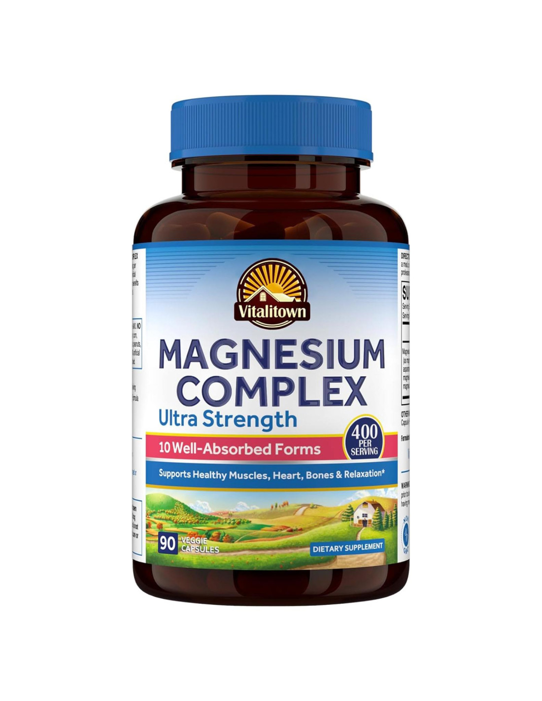 - Suplemento de Magnesio 10-en-1: El Suplemento Complejo de Magnesio Ultra Fuerte de Vitalitown contiene 400 mg de Magnesio elemental por porción de diez de las formas más beneficiosas: glicinato de magnesio, malato, gluconato, taurato, lactato, citrato, aspartato, succinato, óxido y orotato. Están especialmente seleccionados para hombres y mujeres con una biodisponibilidad y calidad inigualables.