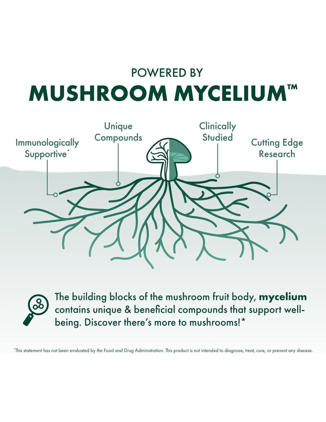 - Impulsado por Micelio de Hongo: Nuestro micelio de hongo orgánico se cultiva en un sustrato de arroz integral orgánico; estudios de terceros muestran que el micelio de hongo y el sustrato de arroz fermentado apoyan tu salud