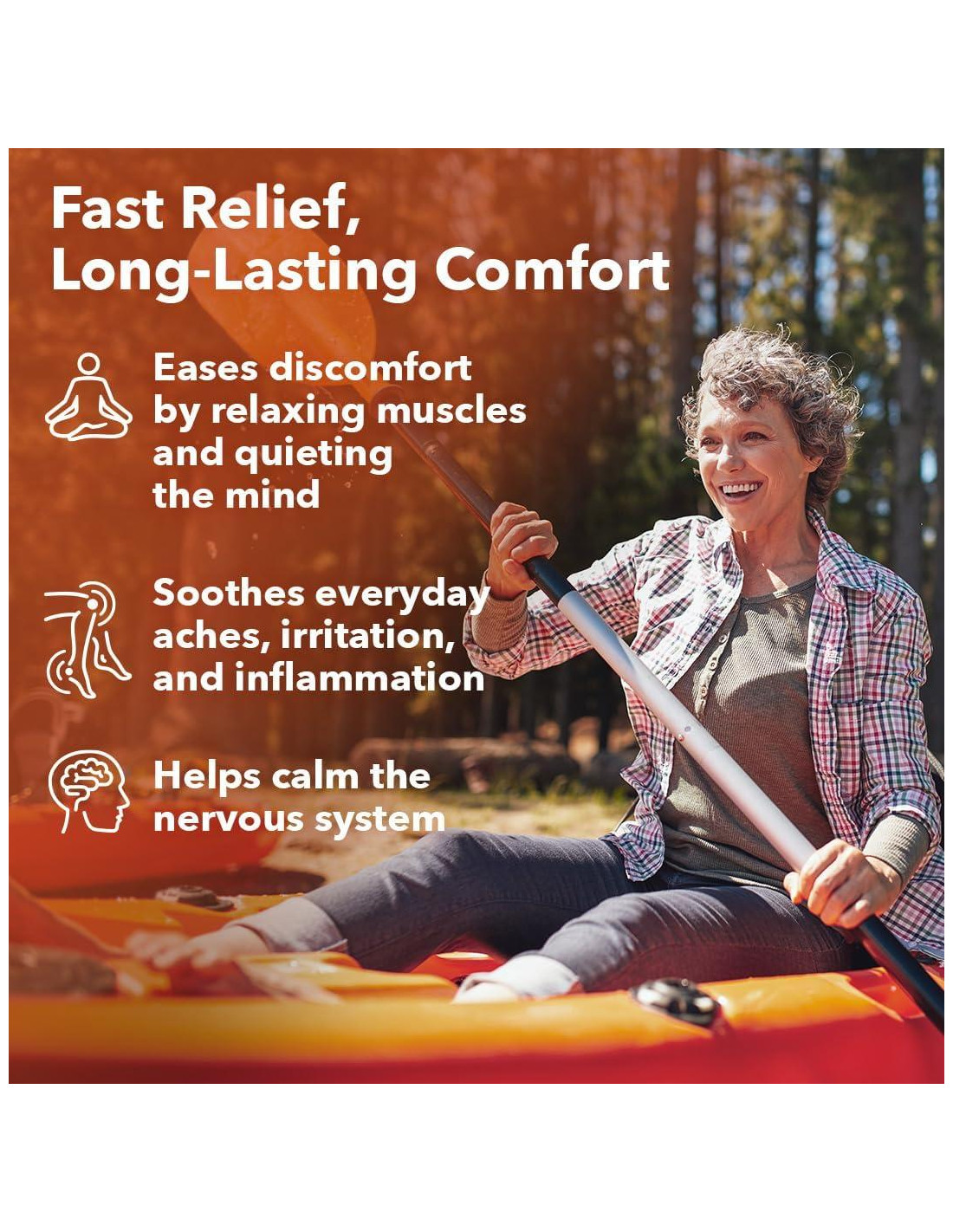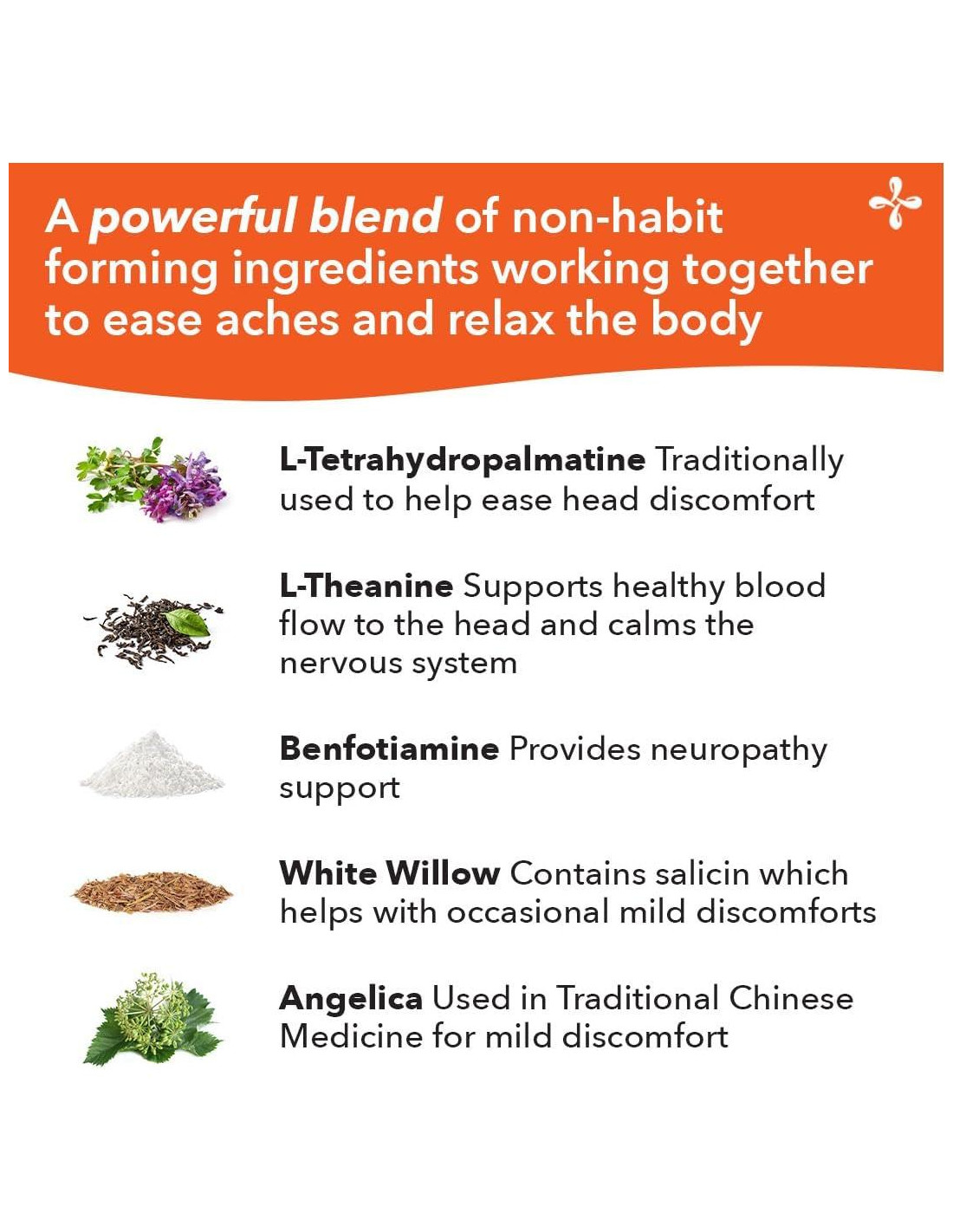 - Ingredientes Clínicamente Probados - Elaborado con ingredientes totalmente naturales como Raíz de Angélica, Corteza de Sauce Blanco, L-Tetrahidro Palmatina y L-Teanina que trabajan juntos para ayudar a apoyar la capacidad natural del cuerpo para aliviar dolores cotidianos.