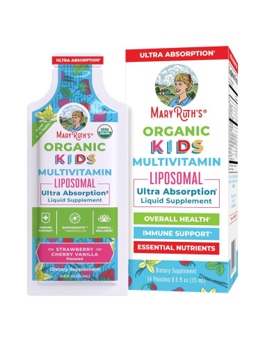 - Multivitamina Orgánica para Niños Liposomal: ¿Buscas apoyar las deficiencias de nutrientes en la dieta de tu hijo? Nuestra Multivitamina Liposomal para Niños es un líquido fácil de tomar, aquí en prácticos paquetes de una sola porción con un delicioso sabor a fresa, cereza y vainilla que hará que a los niños les encante tomar sus vitaminas!