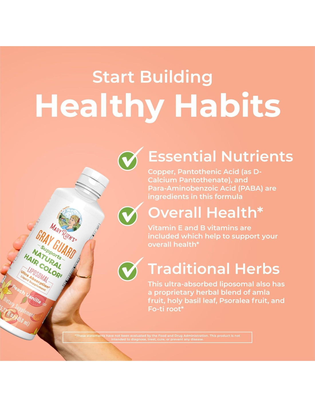 - Múltiples Beneficios: Este liposomal de ultra absorción también tiene una mezcla herbal patentada de fruta amla, hoja de albahaca sagrada, fruta Psoralea y raíz Fo-ti. ¡Disfruta del delicioso líquido con sabor a durazno y vainilla mientras tomas estos nutrientes para tu color de cabello natural y hermoso!