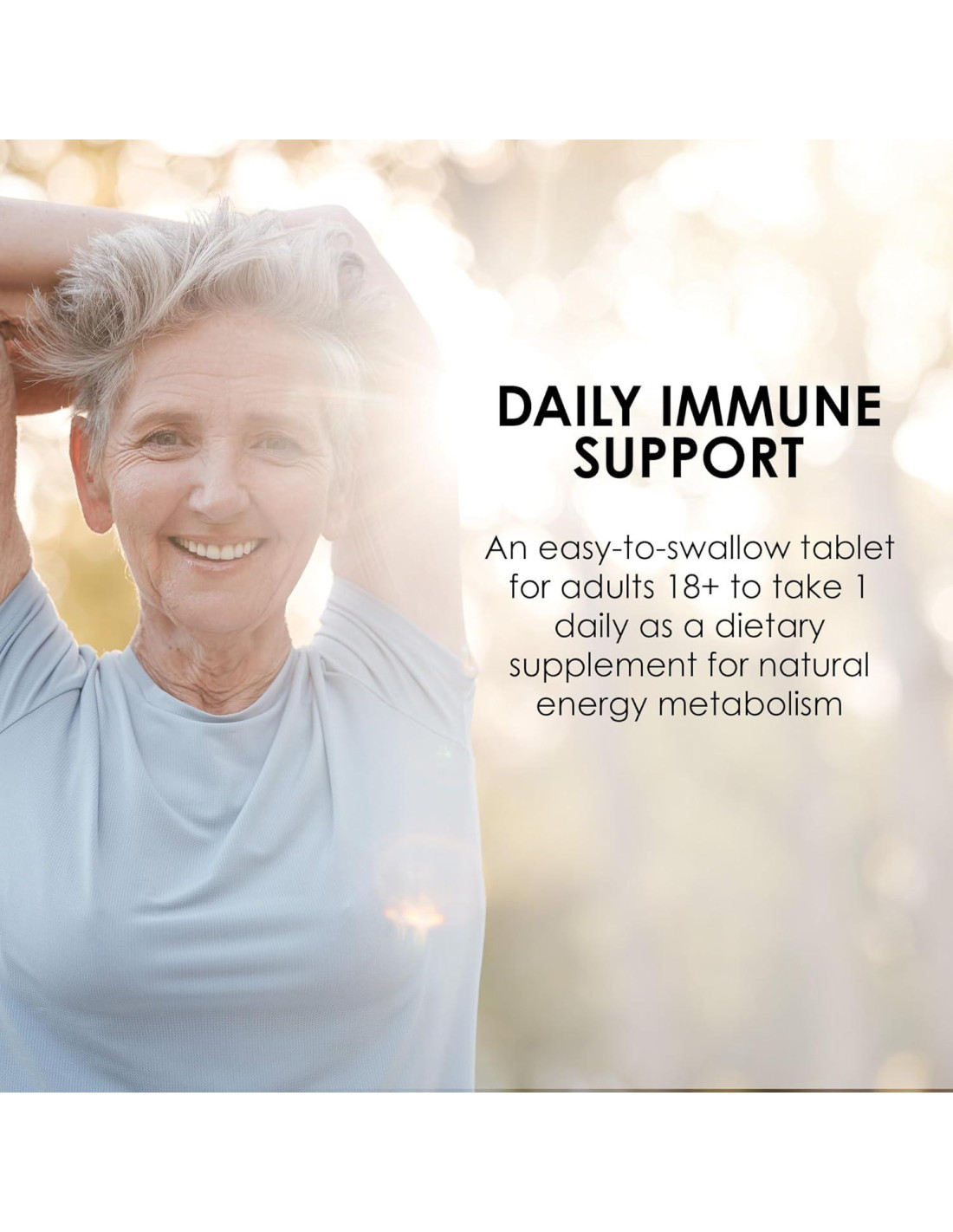 - APOYO INMUNOLÓGICO DIARIO: Una tableta fácil de tragar que los adultos de 18 años o más toman 1 diaria como suplemento dietético para el metabolismo energético natural
