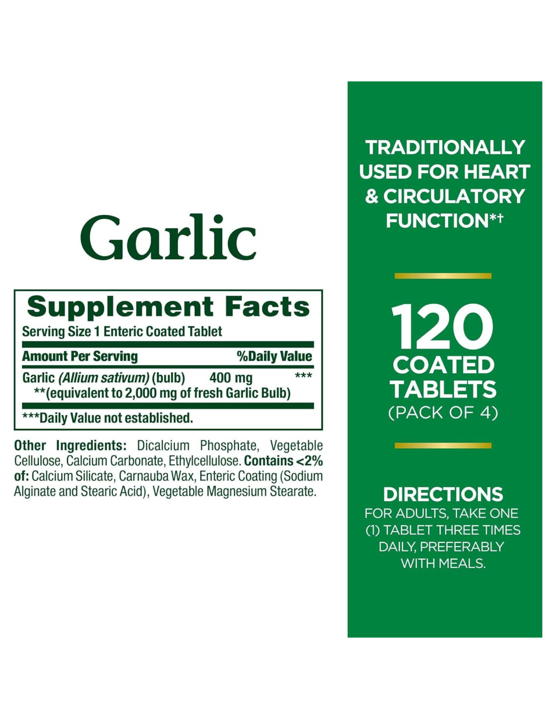 El ajo promueve la salud del corazón y cardiovascular y ayuda a mantener los niveles de colesterol que ya están dentro del rango normal. (1) Este producto contiene el componente natural del ajo, alicina. Nuestro método especializado de procesamiento en frío preserva la bondad natural del ajo mientras reduce el olor. Las tabletas sin olor de ajo de Nature's Bounty presentan ajo, que ha sido apreciado durante siglos por sus propiedades revitalizantes. (1) Estas tabletas apoyan un corazón saludable y un sistema cardiovascular y ayudan a mantener los niveles de colesterol que ya están dentro de un rango normal. (1) Los suplementos de hierbas naturales se utilizan para ayudar en la lucha del cuerpo contra diversas condiciones de salud, así como para promover el bienestar general. (1) El uso de suplementos herbales, junto con una dieta saludable, es beneficioso para llevar un estilo de vida saludable. (1) Tu corazón es el músculo más importante de tu cuerpo, y es responsable de bombear nutrientes. Tomar los suplementos de salud del corazón de Nature's Bounty junto con ejercicio regular y una dieta saludable puede ayudar a mantener tu corazón sano y fuerte. (1) Las personas conscientes de la salud han confiado en Nature's Bounty durante décadas. Nuestra dedicación a la calidad, consistencia e investigación científica ha resultado en vitaminas y suplementos nutricionales de excelencia inigualable. Al combinar los últimos avances en ciencia nutricional con grandes ingredientes, Nature's Bounty se enorgullece de ofrecerte suplementos de calidad y valor incomparables.