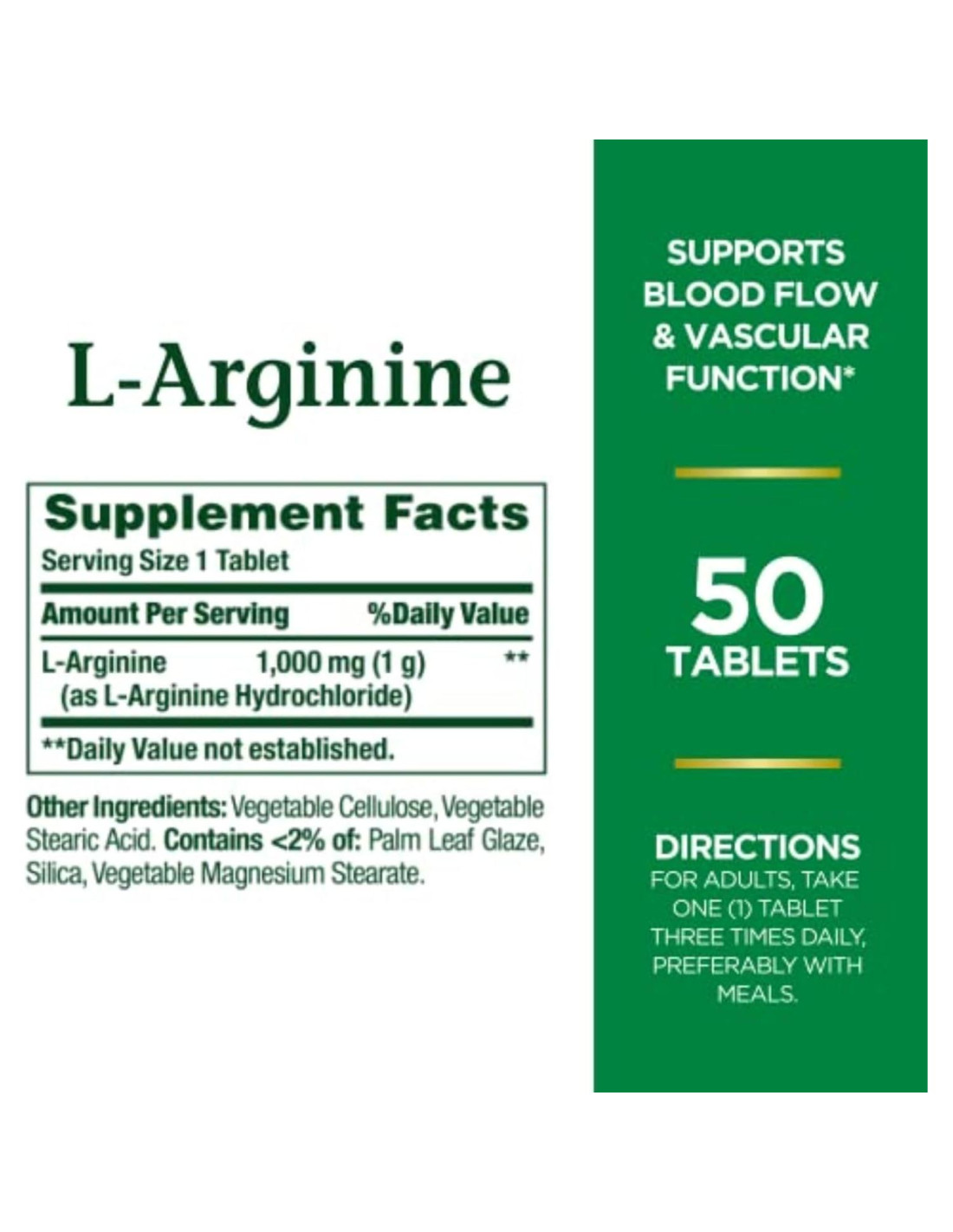 - TABLETAS DE L-ARGININA VEGETARIANAS: Las tabletas de L-Arginina de Nature's Bounty son adecuadas para vegetarianos; no OGM; sin gluten y no contienen colores; sabores o edulcorantes artificiales