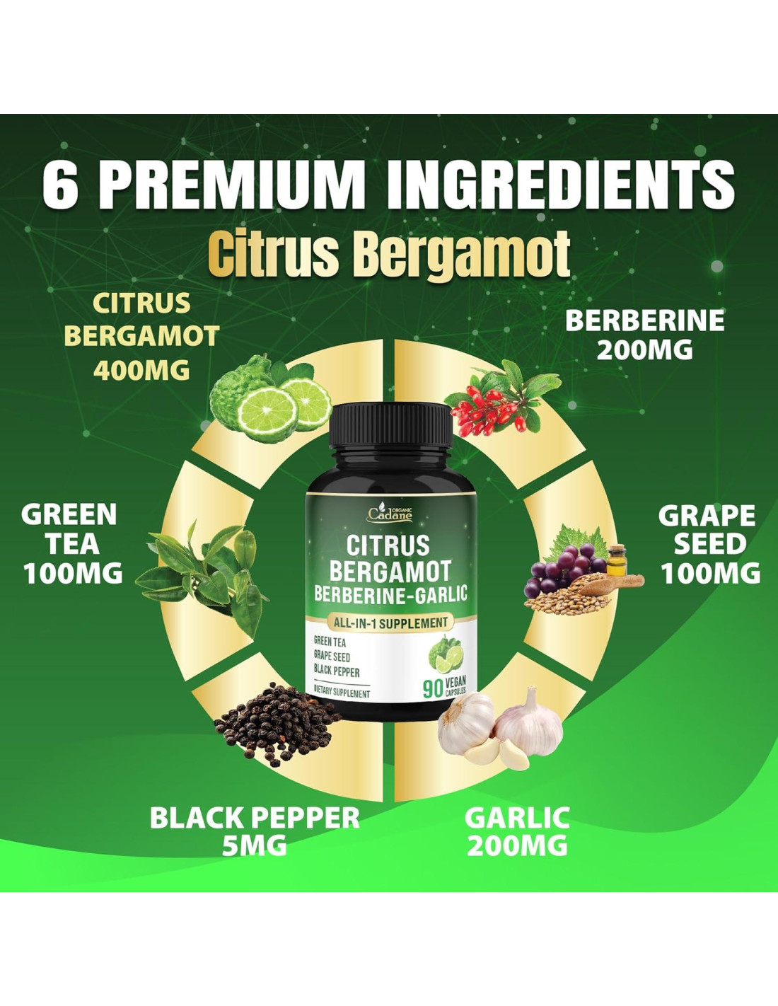 - Mezcla Botánica Potente: Con Bergamota Cítrica, Berberina, Ajo, Té Verde, Semilla de Uva y Pimienta Negra, esta fórmula trabaja sinérgicamente para apoyar tu bienestar y vitalidad.