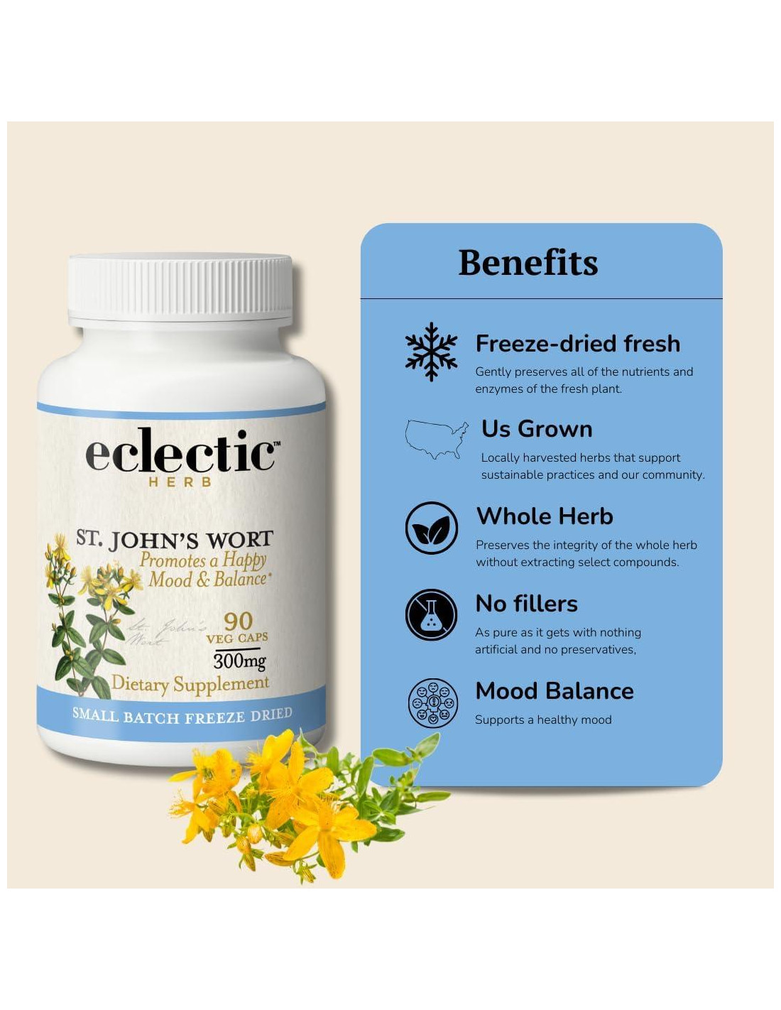 - Calidad Premium: Hecho de flores de Hierba de San Juan de Oregón liofilizadas frescas de pequeños lotes, cuidadosamente cosechadas en su máxima potencia.