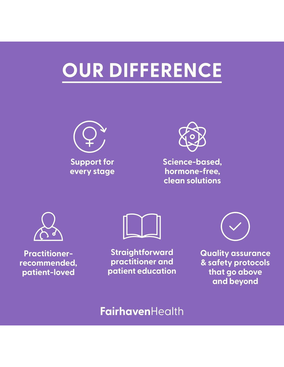 - Una Marca de Confianza Desde 2003: Fairhaven Health se dedica a proporcionar soluciones nutricionales basadas en la ciencia, limpias y libres de hormonas que apoyan a las mujeres en cada etapa de la vida, desde la menstruación hasta la menopausia y más allá. Durante más de 20 años, nuestros productos han sido confiables y recomendados por profesionales de la salud en todo el mundo.