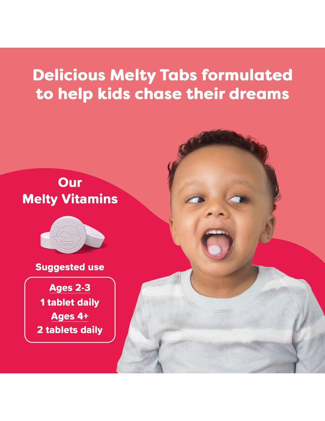 - Cómo tomar: Niños de 2 a 3 años toman 1 tableta diaria; niños de 4 años en adelante toman 2 tabletas diarias; nuestras vitaminas se derriten en la boca de tus hijos o también se pueden disolver en agua, jugo o incluso batidos