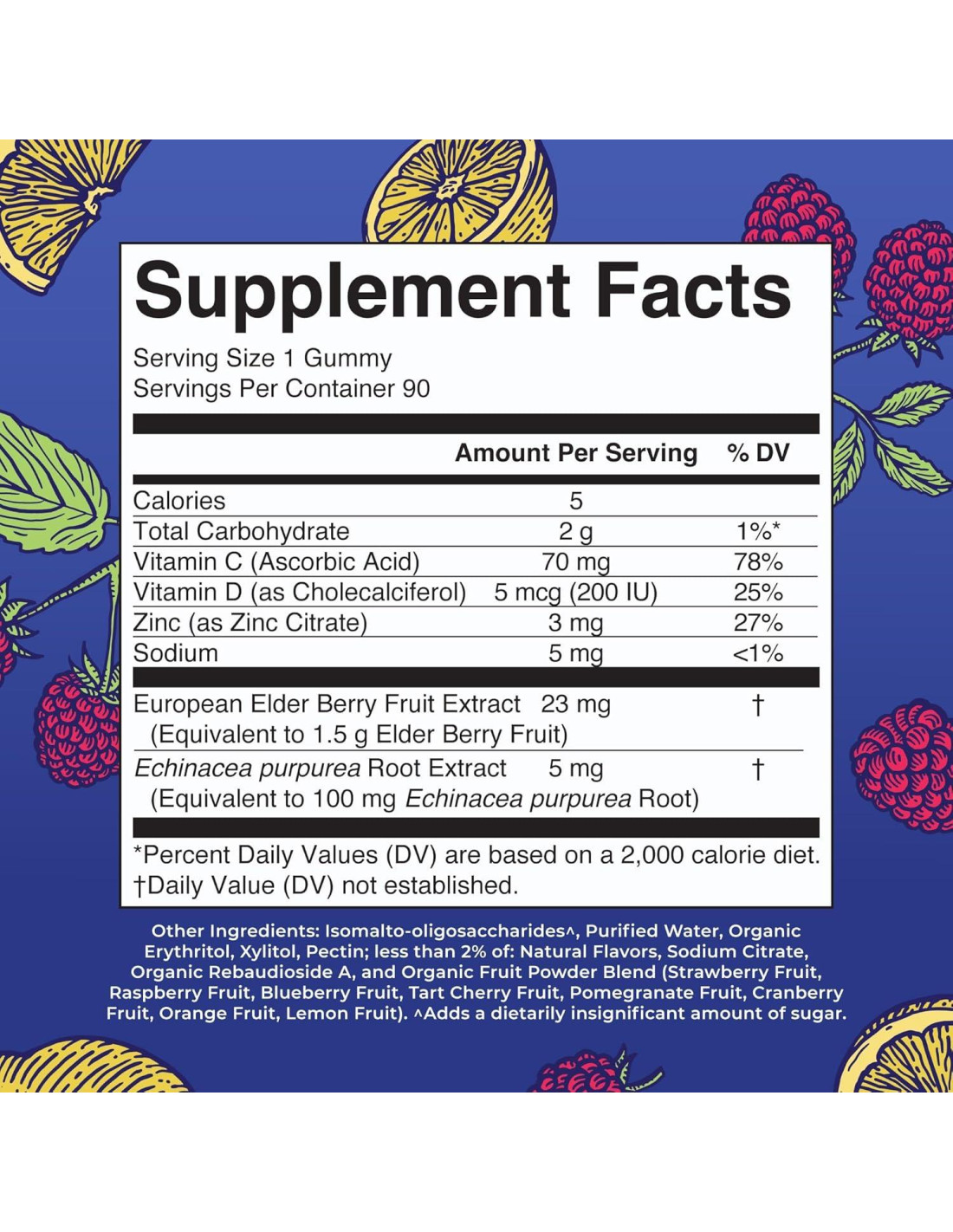 - Gominolas de Vitamina C, D, Zinc, Equinácea y Saúco: Las Gominolas de Inmunidad de MaryRuth están formuladas con ingredientes para brindarte el soporte inmunológico que necesitas. Esta poderosa mezcla de Zinc, Saúco, Vitamina C, Vitamina D y Equinácea ofrece beneficios adicionales que incluyen salud de la piel y los huesos.