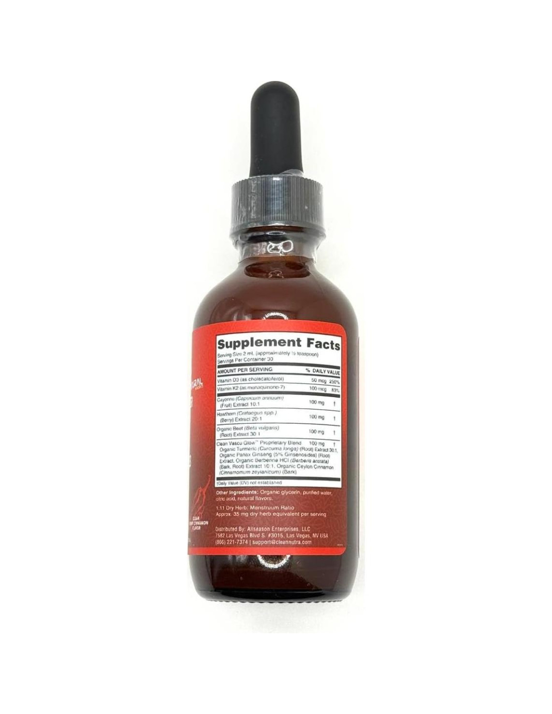 - Suplemento Líquido de Gotas de Pimienta de Cayena Clean Nutra Vascu Glow Todo en Uno - Una poderosa mezcla de hierbas y vitaminas probadas en el tiempo como canela de Ceilán orgánica, suplemento de baya de espino, remolachas, suplemento de cúrcuma, suplemento de vitamina K2 D3, suplemento de ginseng y berberina con canela de Ceilán. Estos goteros líquidos vegetarianos proporcionan una fórmula botánica concentrada que apoya el bienestar diario y el equilibrio general.