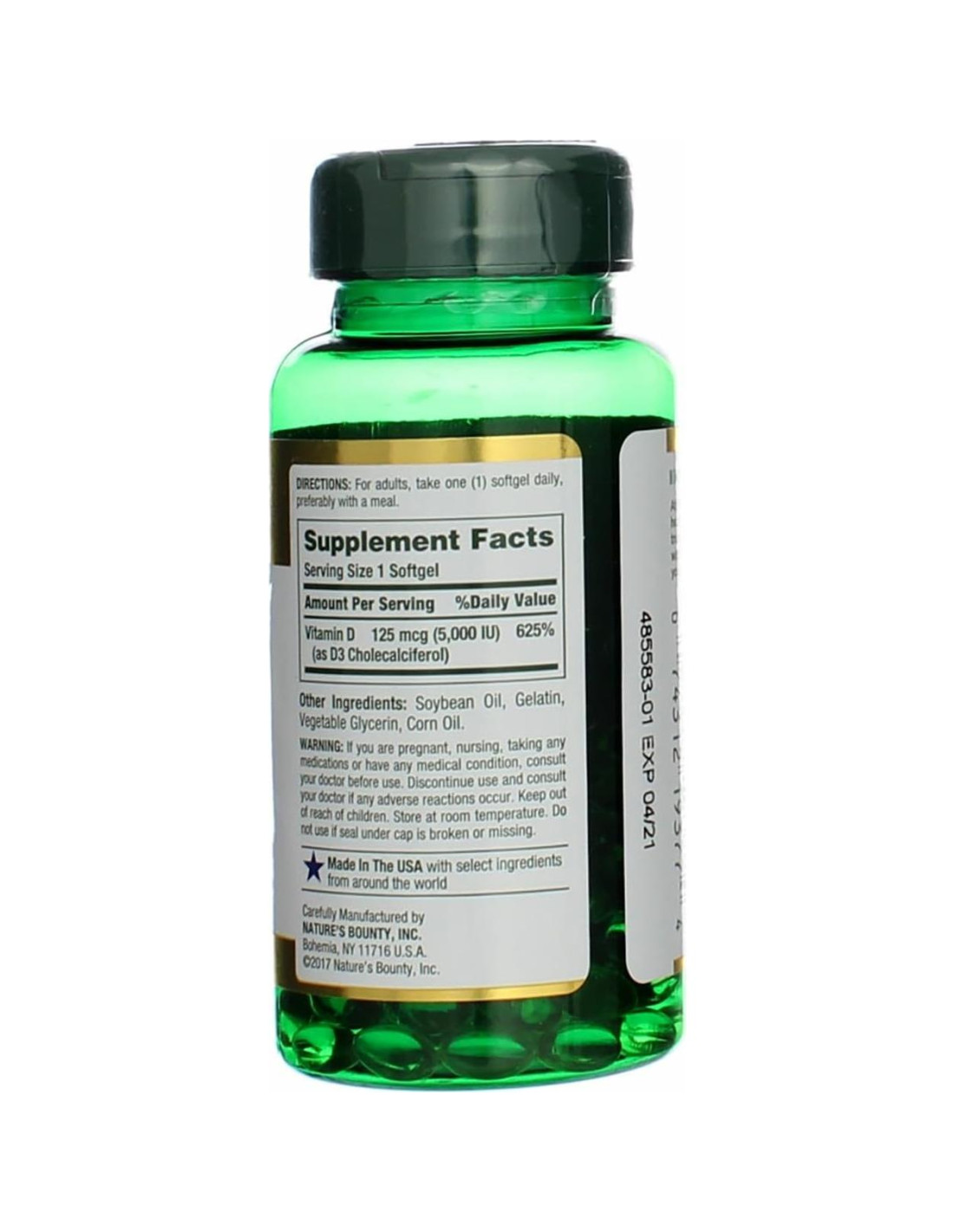 - VITAMINA D. La compañía para todas tus necesidades de vitaminas y nutrición. Ingredientes Activos: 1 Softgel: Vitamina D (como D3 Colecalciferol) 5,000 UI; Aceite de Soja; Gelatina; Glicerina Vegetal. Usos: La Vitamina D es un nutriente esencial que trabaja con el calcio para ayudar a desarrollar huesos y dientes fuertes. Este suplemento de Vitamina D de alta potencia ayuda a mantener la salud mamaria y un sistema inmunológico saludable.