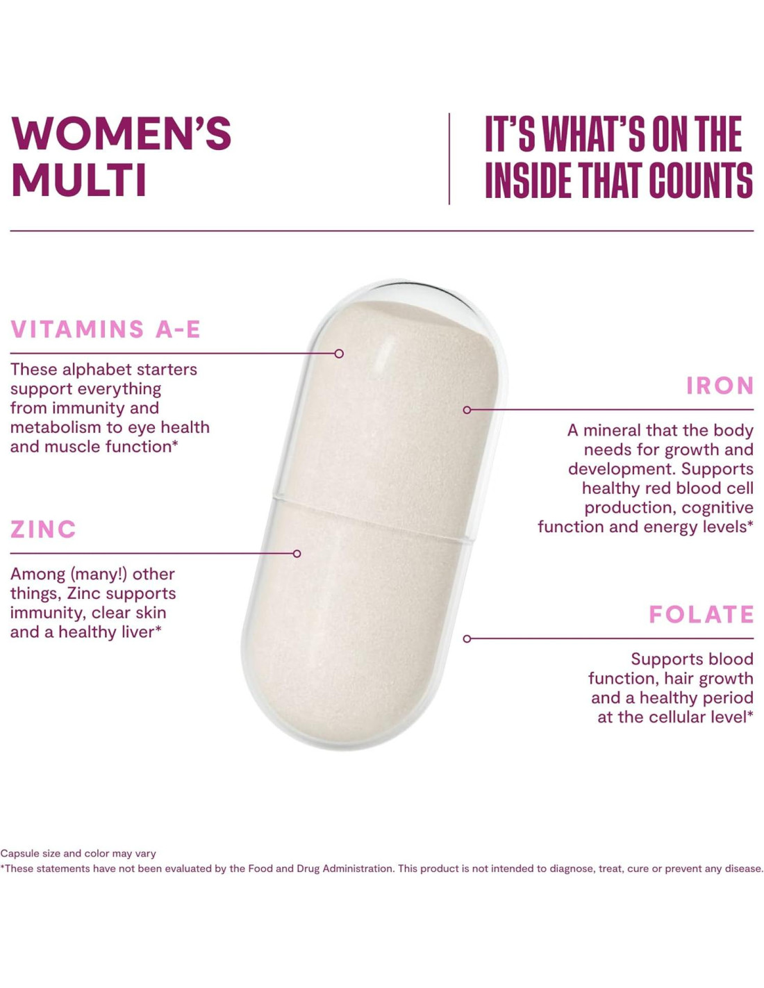 ¿Buscas llenar los vacíos en tu dieta o volver a sentirte más como tú? Presentamos el suplemento multivitamínico para mujeres de HABIT, un sistema de apoyo todo en uno para la salud y el bienestar general. Este suplemento de amplio espectro para mujeres apoya todo, desde la inmunidad, energía, estado de ánimo y sueño, hasta un período saludable, hormonas, músculos y piel calmados*. Con 23 vitaminas y minerales esenciales en una cápsula fácil de tragar, cada porción contiene Vitaminas A-E, además de Biotina, Folato, Hierro, Magnesio, Niacina, Potasio, Zinc y Calcio, junto con Arándano, Acai, Granada y Papaya ricos en antioxidantes. Estas cápsulas no OGM están libres de gluten y colores y sabores sintéticos. *Estas declaraciones no han sido evaluadas por la Administración de Alimentos y Medicamentos. Este producto no está destinado a diagnosticar, tratar, curar o prevenir ninguna enfermedad.