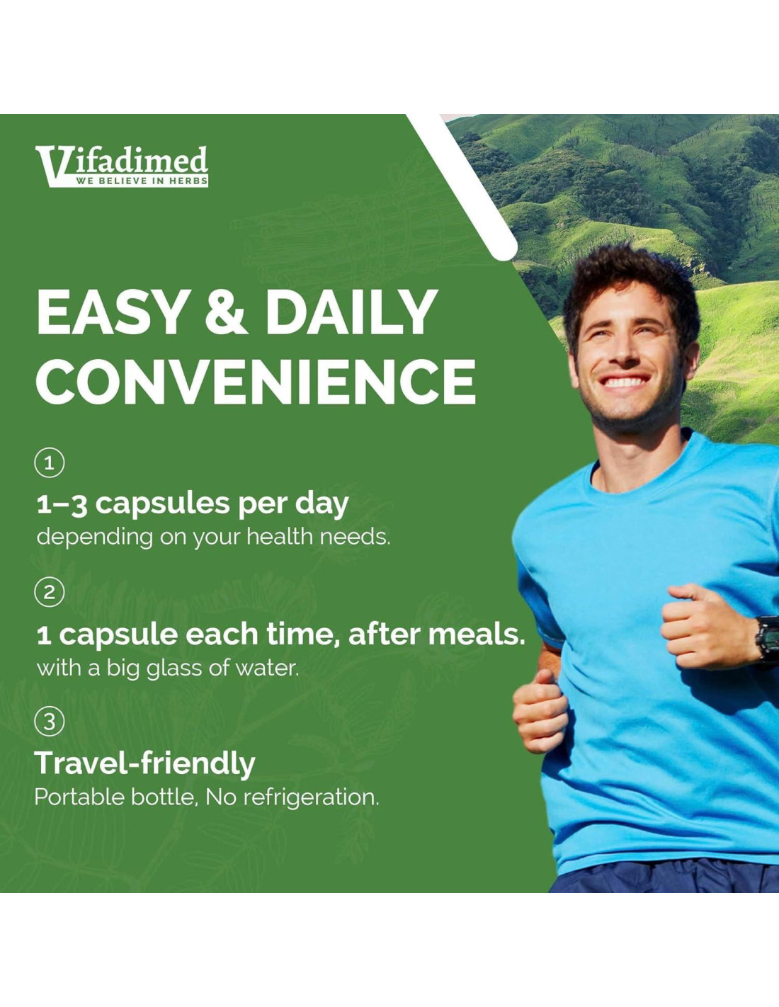 - Instrucciones: Toma 1 cápsula después de una comida, 1 a 3 veces al día, dependiendo de tus necesidades de salud.