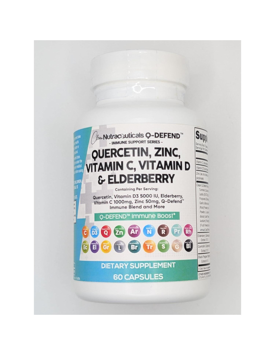 - Mezcla Inmunológica Q-Defend - No se conforme con productos que solo suministran los suplementos inmunológicos básicos como vitamina C, vitamina D3 y saúco. Nuestra mezcla inmunológica Q-Defend contiene estos ingredientes esenciales más cúrcuma, equinácea, raíz de jengibre, polvo de ajo, ortiga, hongo reishi, escaramujo, bromelina e incluso musgo marino irlandés. ¡Nuestra poderosa fórmula ofrece 18 ingredientes seleccionados a mano que podrían ayudar a mejorar su salud general de diversas maneras!